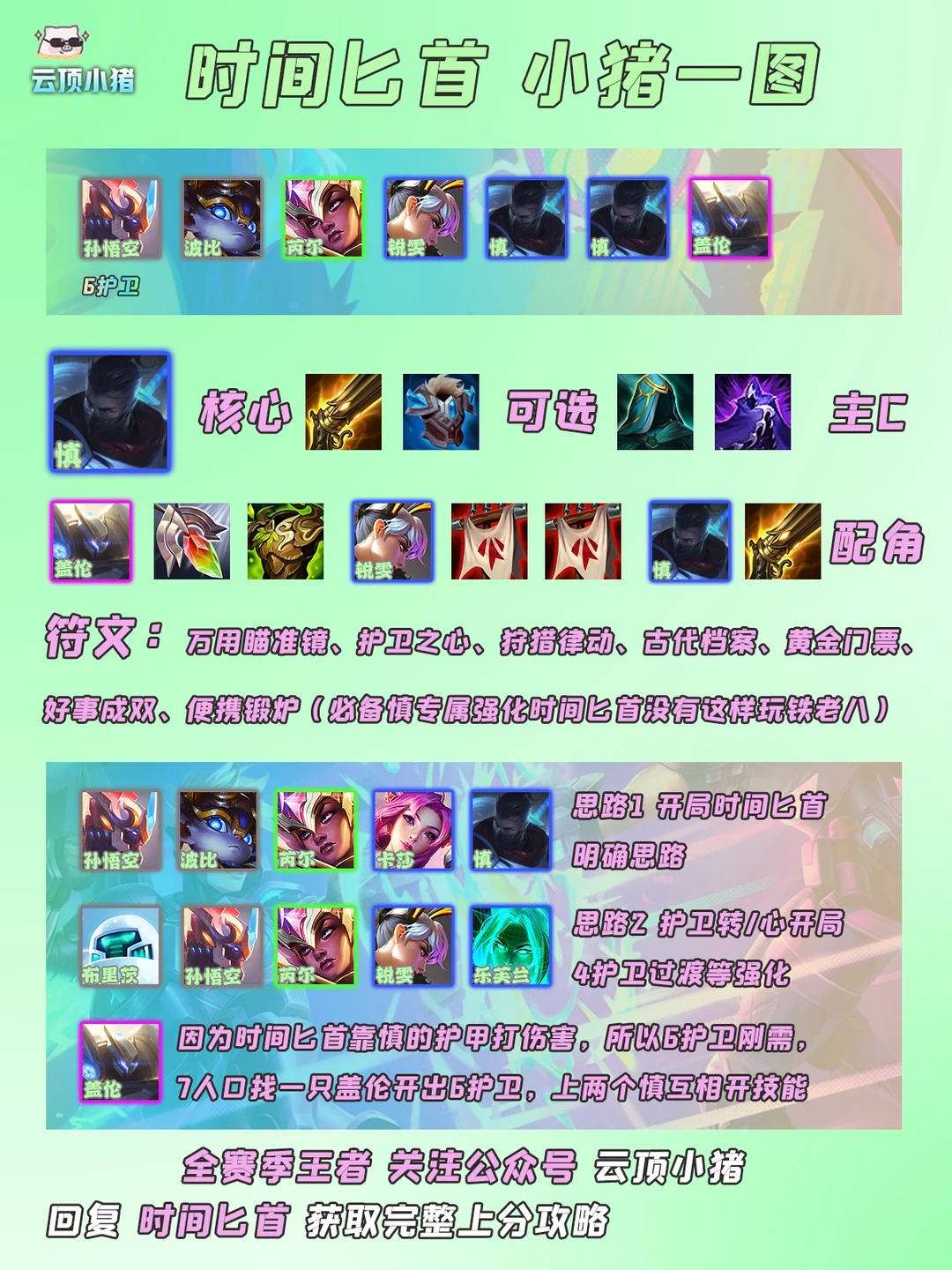 开局时间匕首强化或者是护卫相关的海克斯,这样可以等刷出来或者转卡莎等阵容。