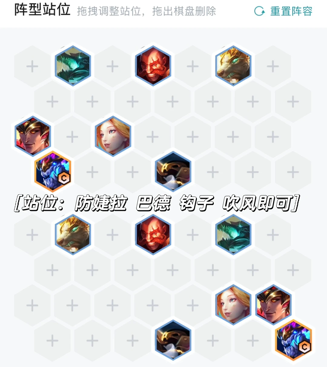 有婕拉和勾子可以微调一下,一般不让对面C位第一时间切到索尔都可以的,有婕拉后排不要放一排。
