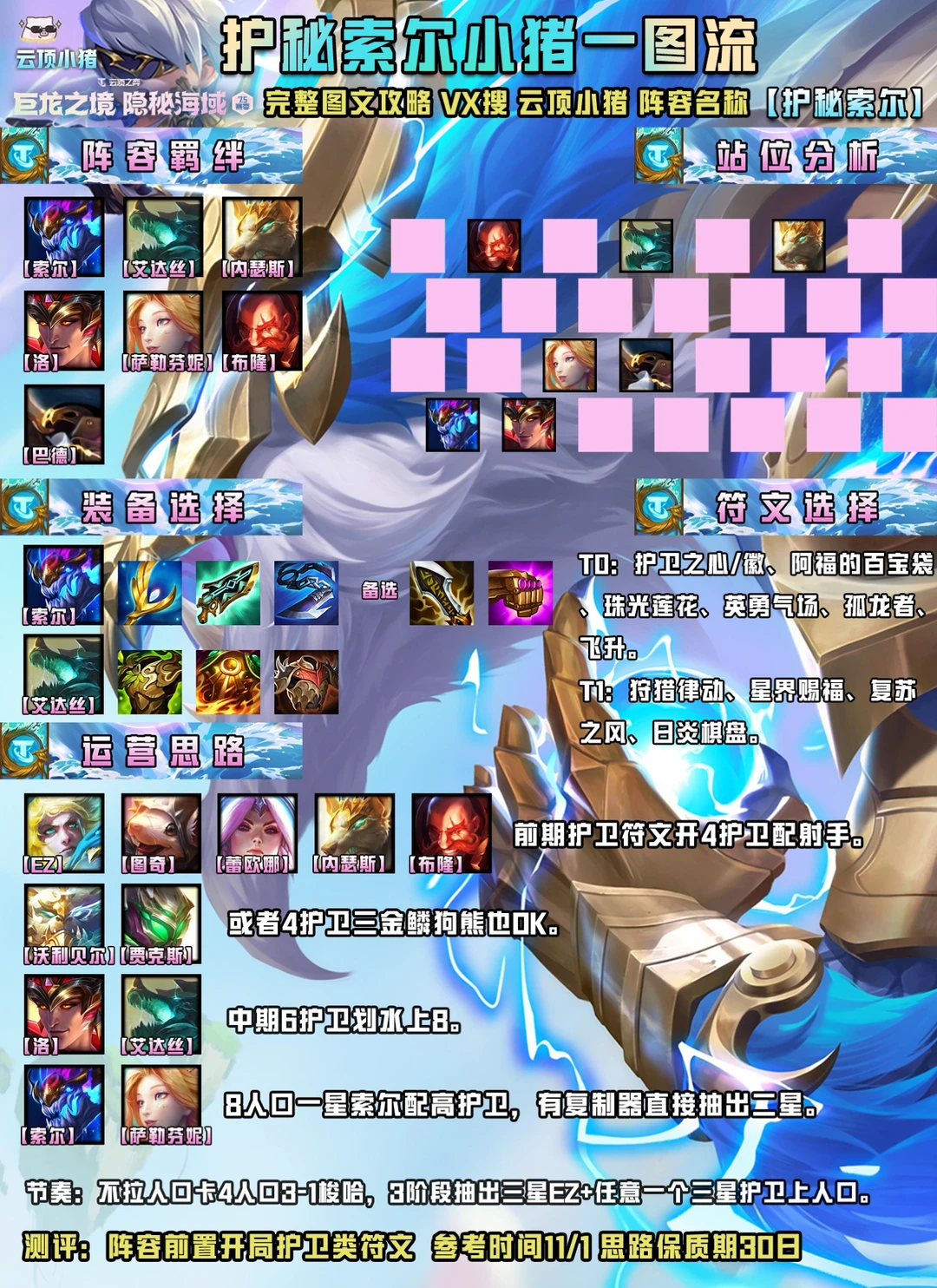 [偷笑R]赛季末了,最近很多小伙伴私信小猪还有没有什么冷门又特别猛的阵容?还真有,前两天偷学了一套护卫索尔,强度爆炸!