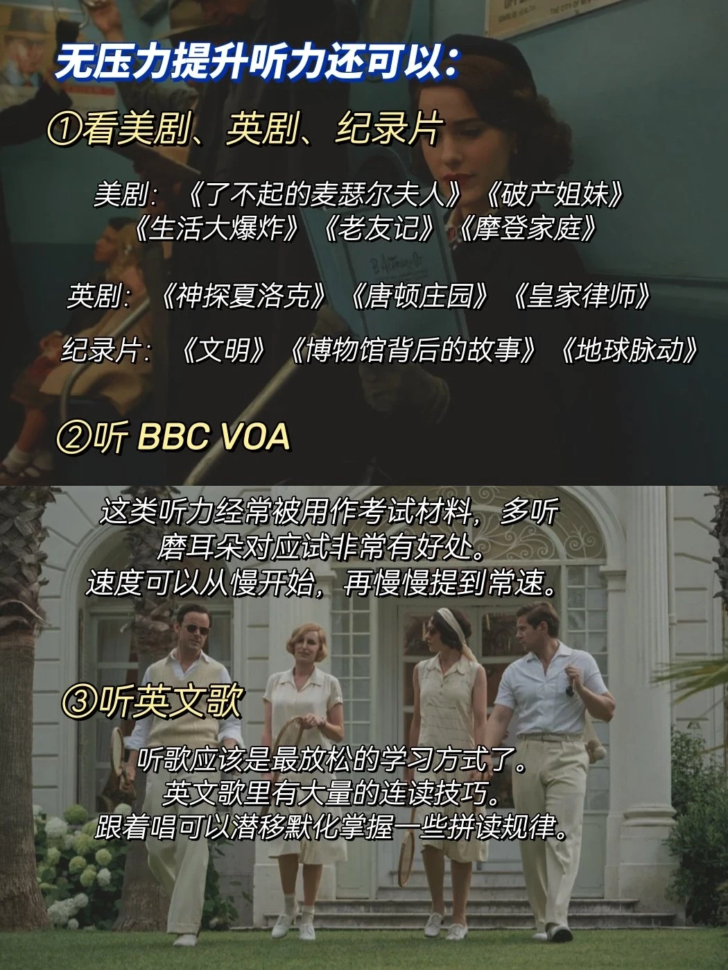 ①看英剧、美剧、纪录片