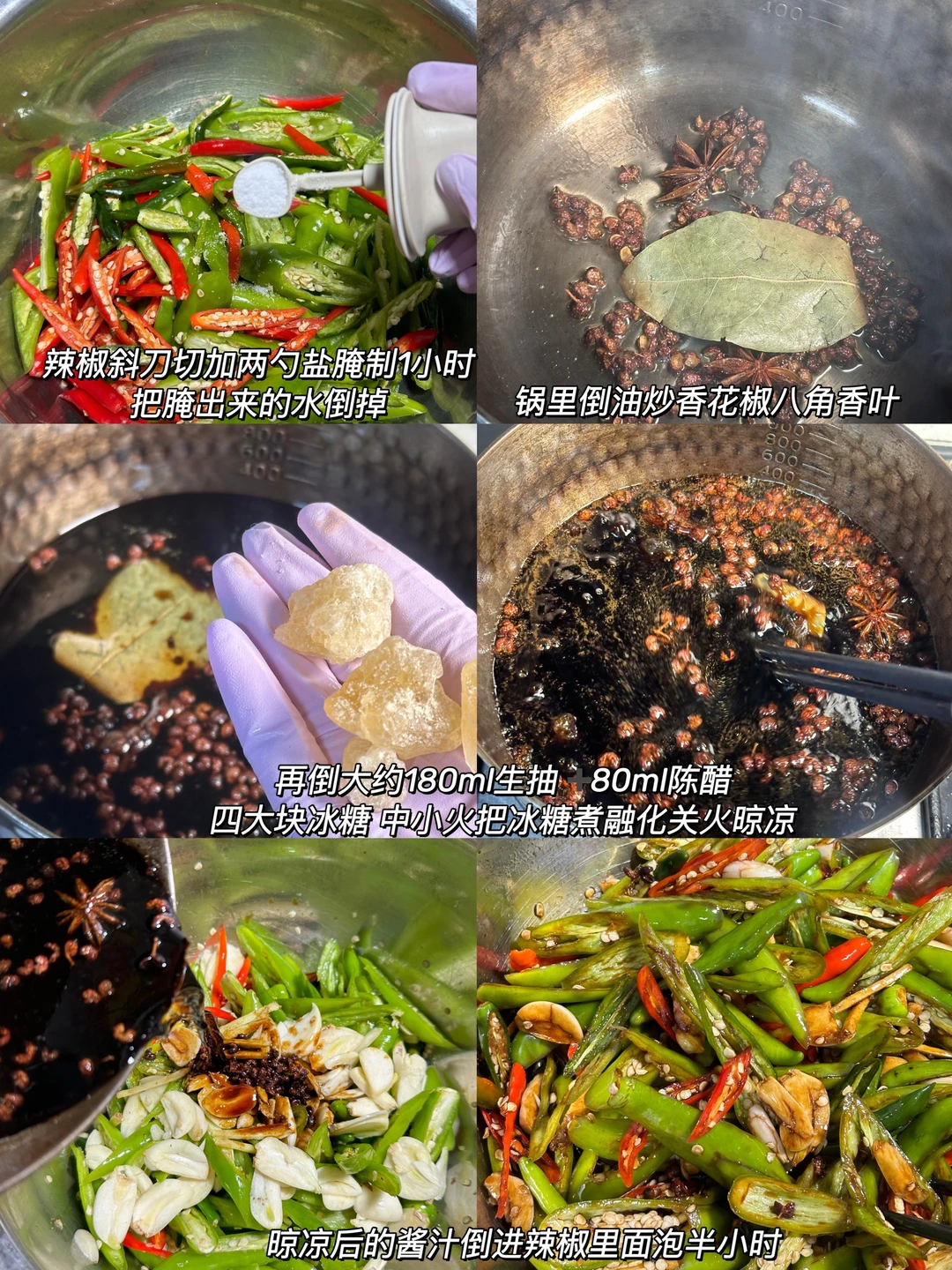 ✨食材:一斤青椒(我买的高安椒 线椒也🉑,不要买软的就行)两把小米椒 姜 、蒜片(切了两头🧄) 花椒 一颗八角 一片香叶