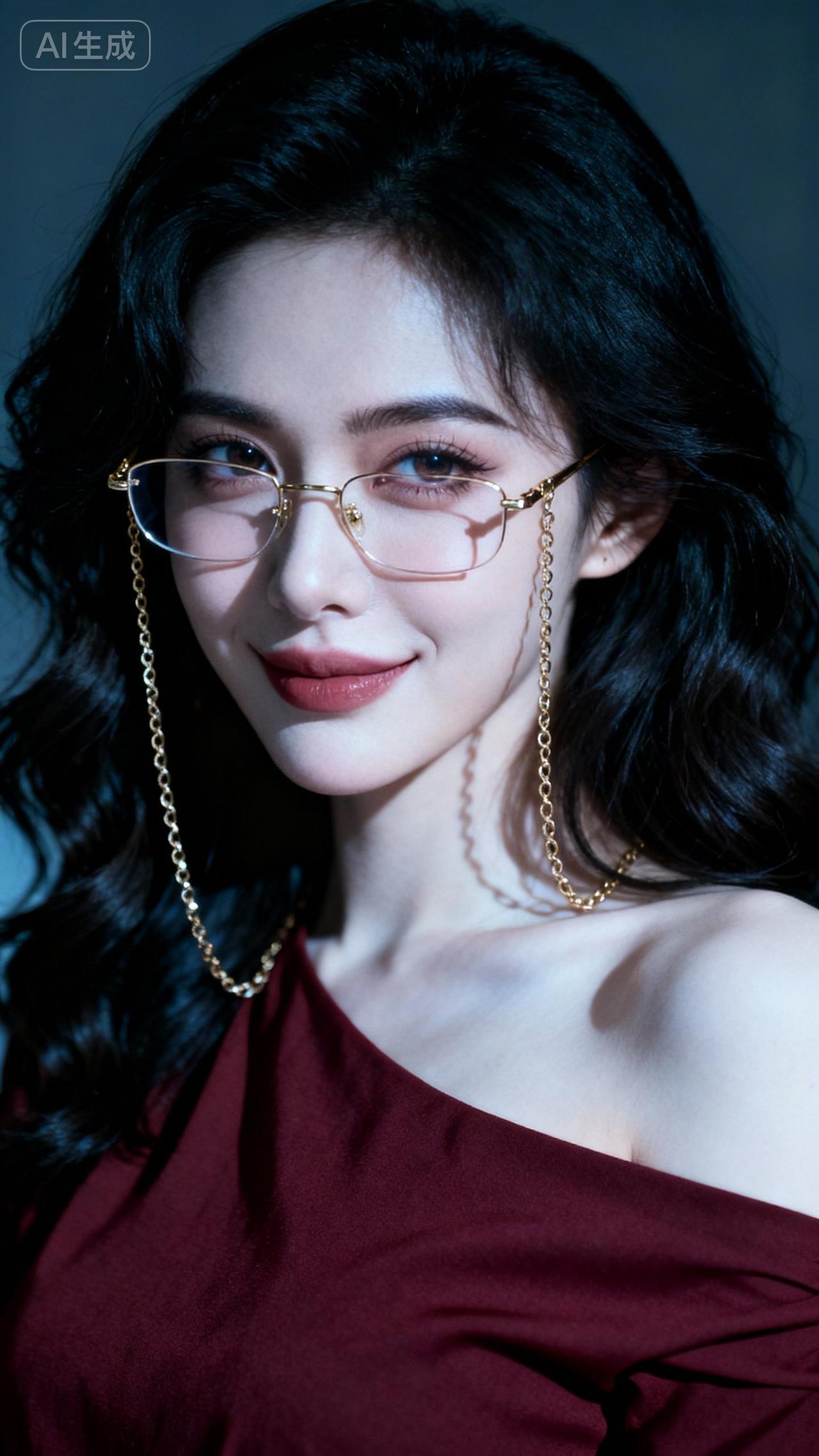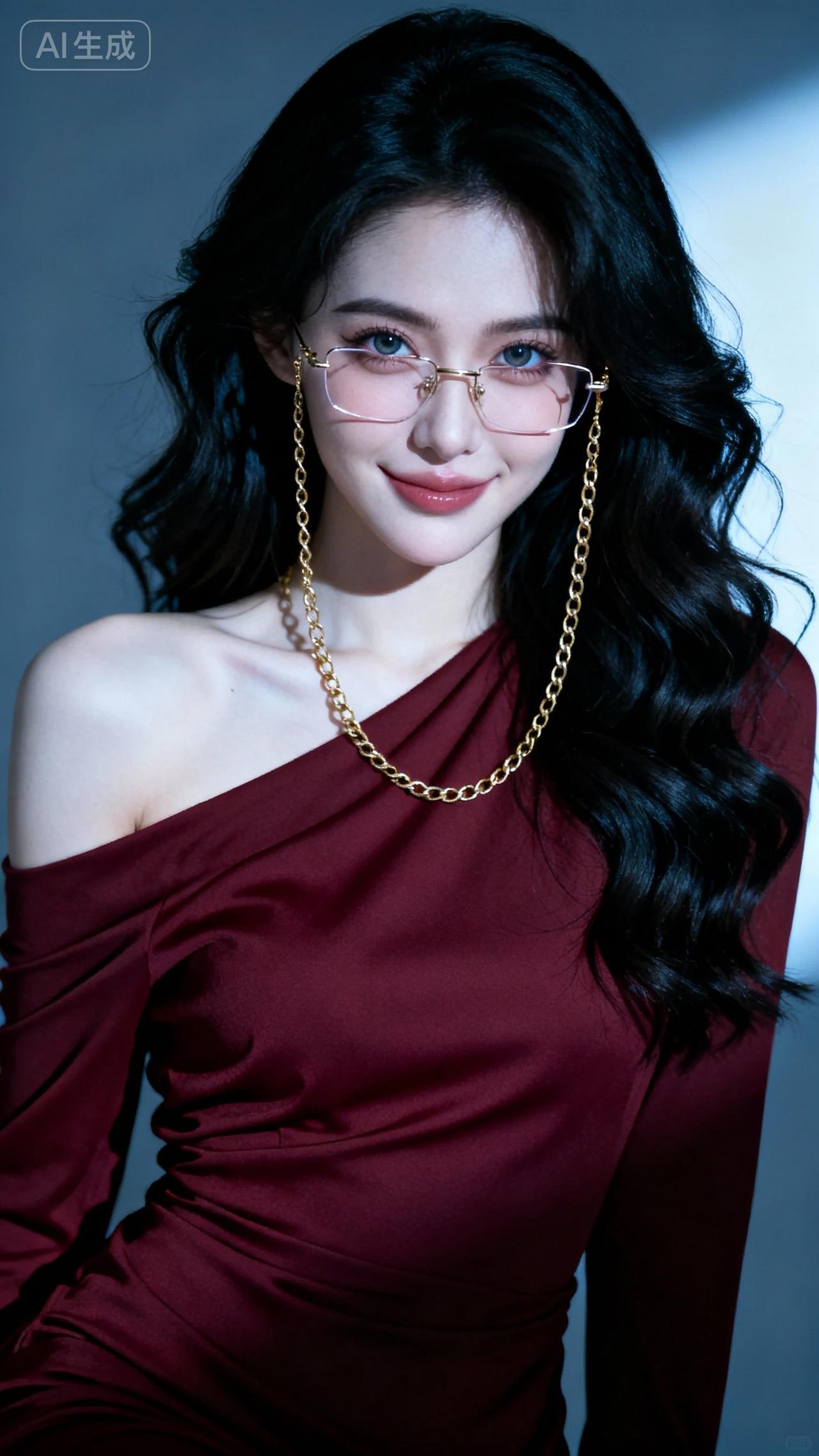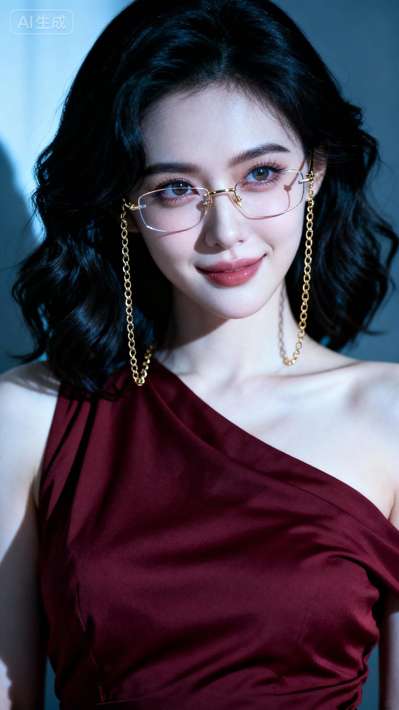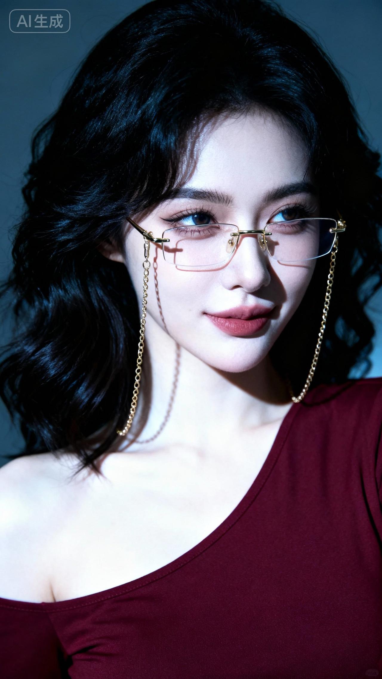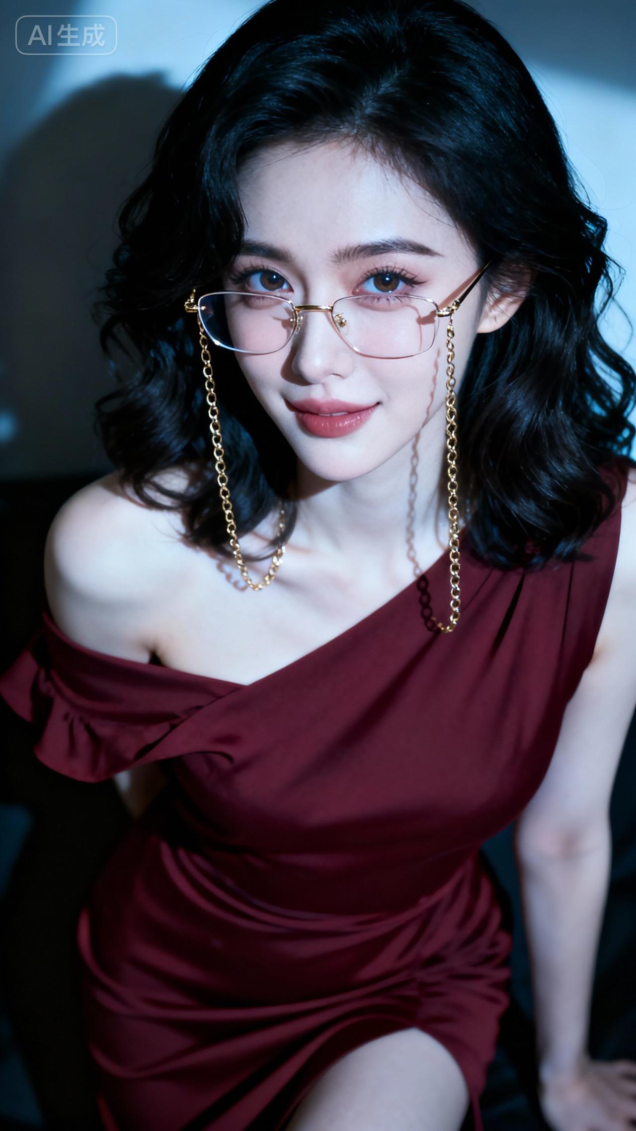 优雅红裙,复古眼镜,时尚与优雅的完美结合。