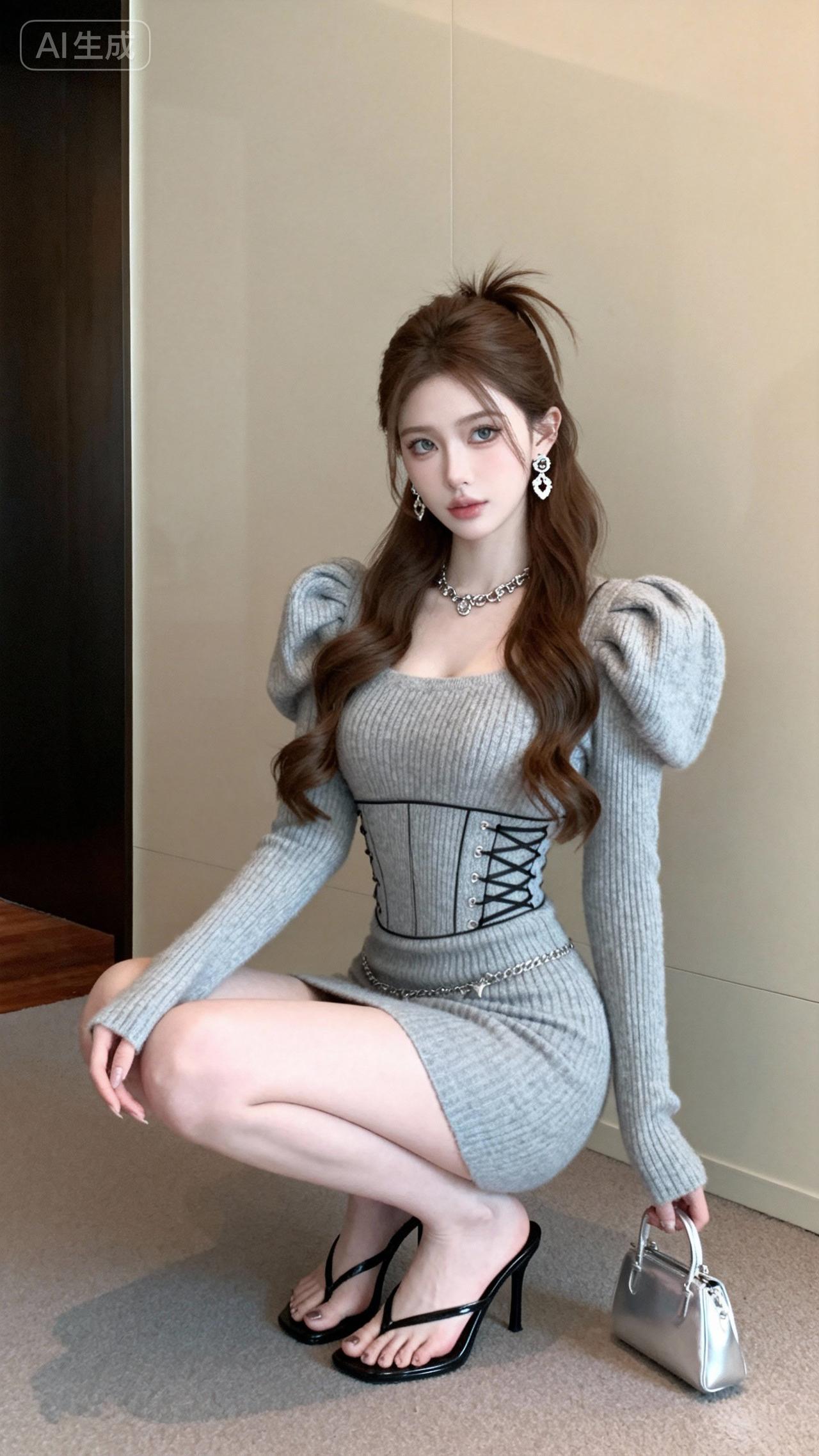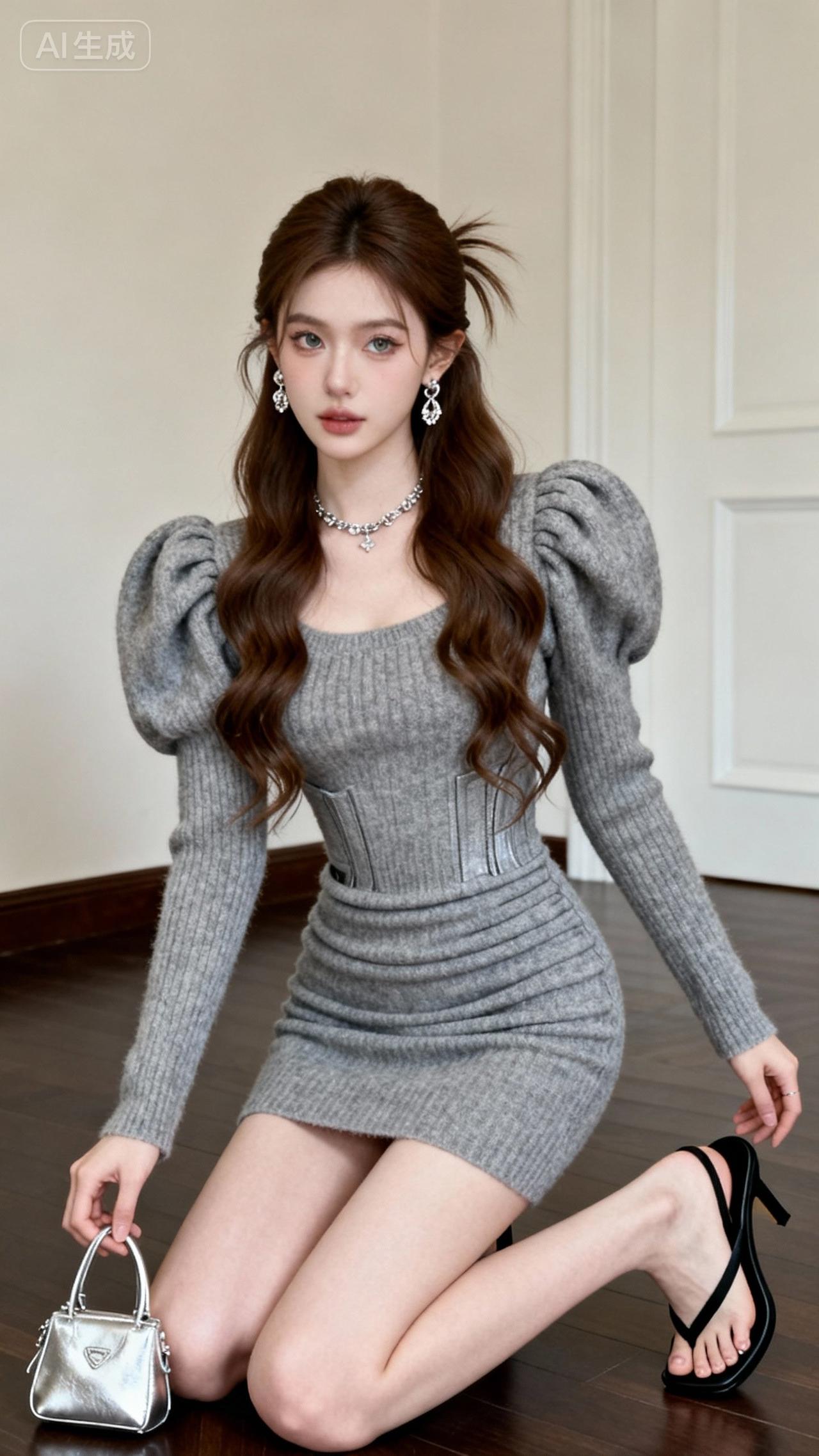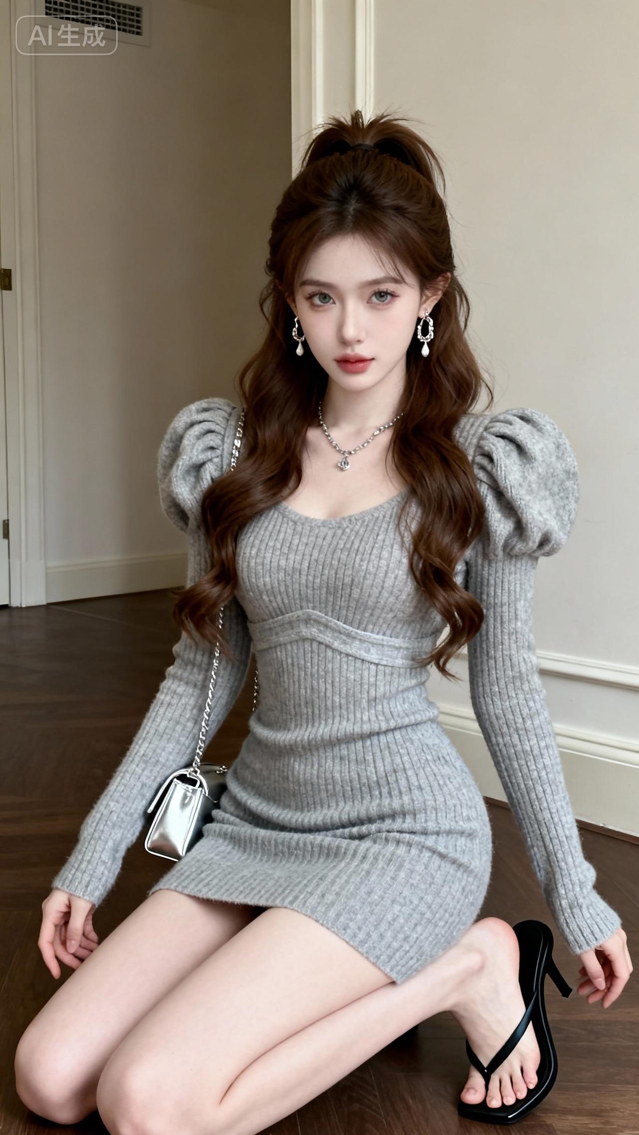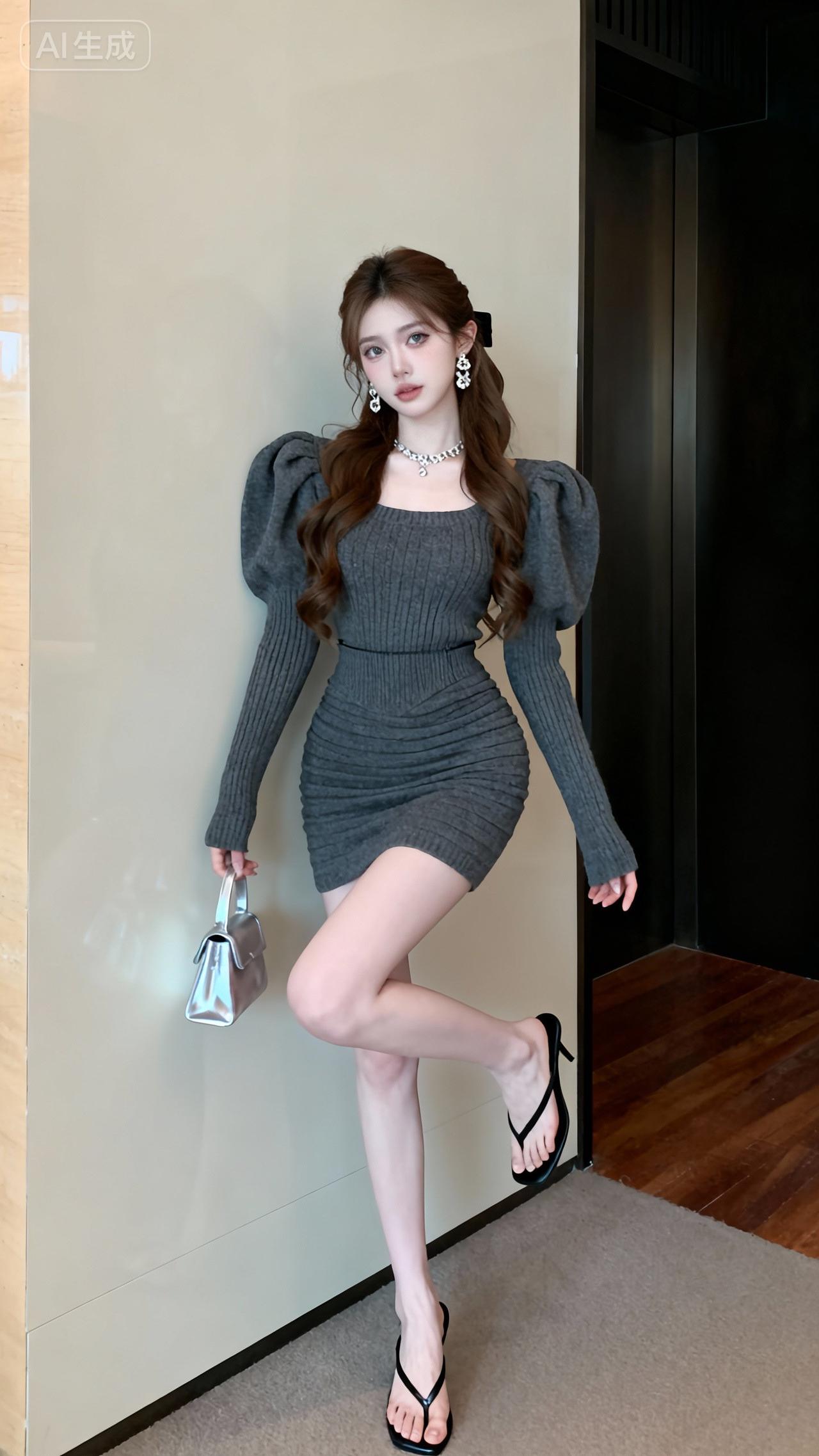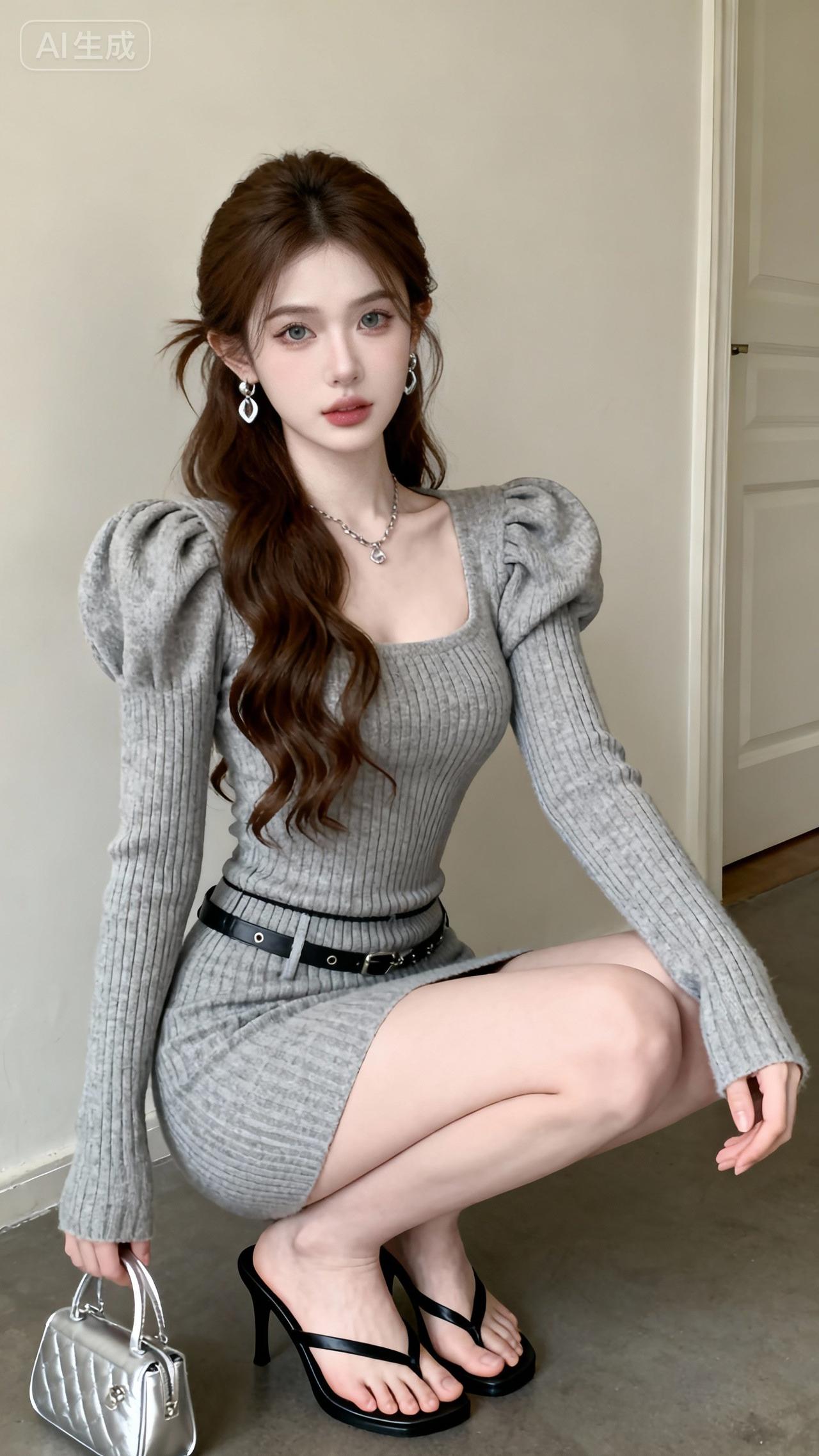 泥土的气息裹着晨露漫开,深褐的土地上,菜叶舒展着青绿的脉络。暗红针织衫的纹路与泥