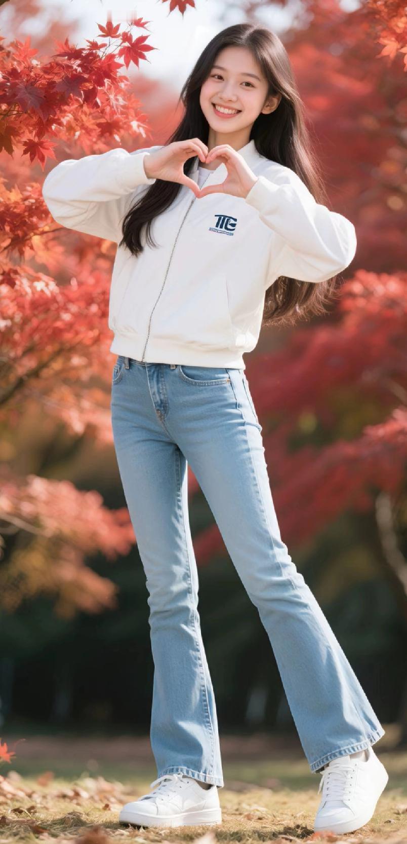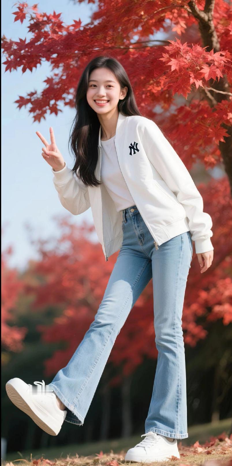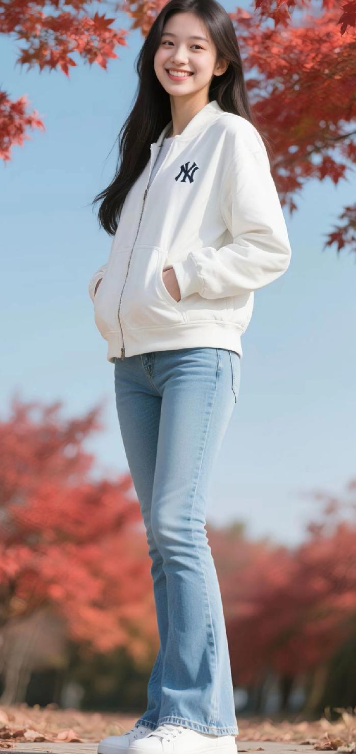 16岁少女的森林时光,时尚貌美,灰色紧身牛仔裤搭配短款上衣,尽显青春活力,魅力无