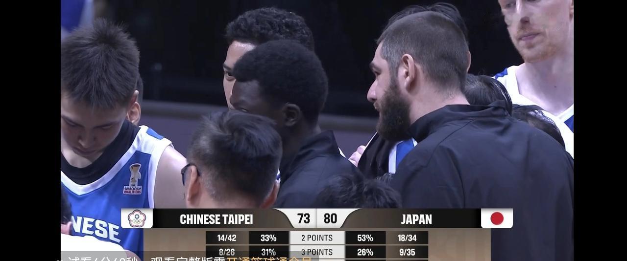 12月1日男篮世界杯亚洲区预选赛第一阶段,日本队80比73战胜中国台北队。半场时中国台北队36 - 42落后,第三节追平后,末节还是输掉比赛。 中国台北队卢俊翔拿下19分3板1助,陈盈骏贡献16分4板3助。日本队西田优大表现出色,砍下21分8板2助。同天,韩国队90 - 76击败中国队,日本和韩国都两连胜,中国男篮和中国台北队两连败。这次预选赛暴露了我们球队不少问题,后续得好好总结,争取打个翻身仗。 男篮亚预赛 男篮亚洲预选赛