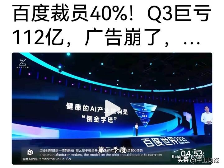 【亏损裁员!】若在这个领域,百度都陷入亏损并开始裁员,那么不难推断,那些与百度业务相近的搜索AI企业,处境也不会乐观。 百度此次可谓状况不断。11月18日财报显示,其亏损达112亿,创下了单季度亏损的最高纪录。随后,便在北京、上海和广州开启裁员行动,部分部门裁员比例高达30%,且新老员工赔偿标准不同。广告收入已连续六个季度下滑,第三季度仅收入153亿,较去年减少18%。用户逐渐不再使用百度搜索,广告主更是将超六成的预算投向内容平台。 尽管百度在AI业务上投入巨大,第三季度收入近百亿、增长50%,却仍无法填补广告业务的亏损缺口。文小言月活刚突破五百万,排名第九。由此可见,倘若百度都落到这般境地,那些业务领域与之相近的公司,情况估计也不容乐观。