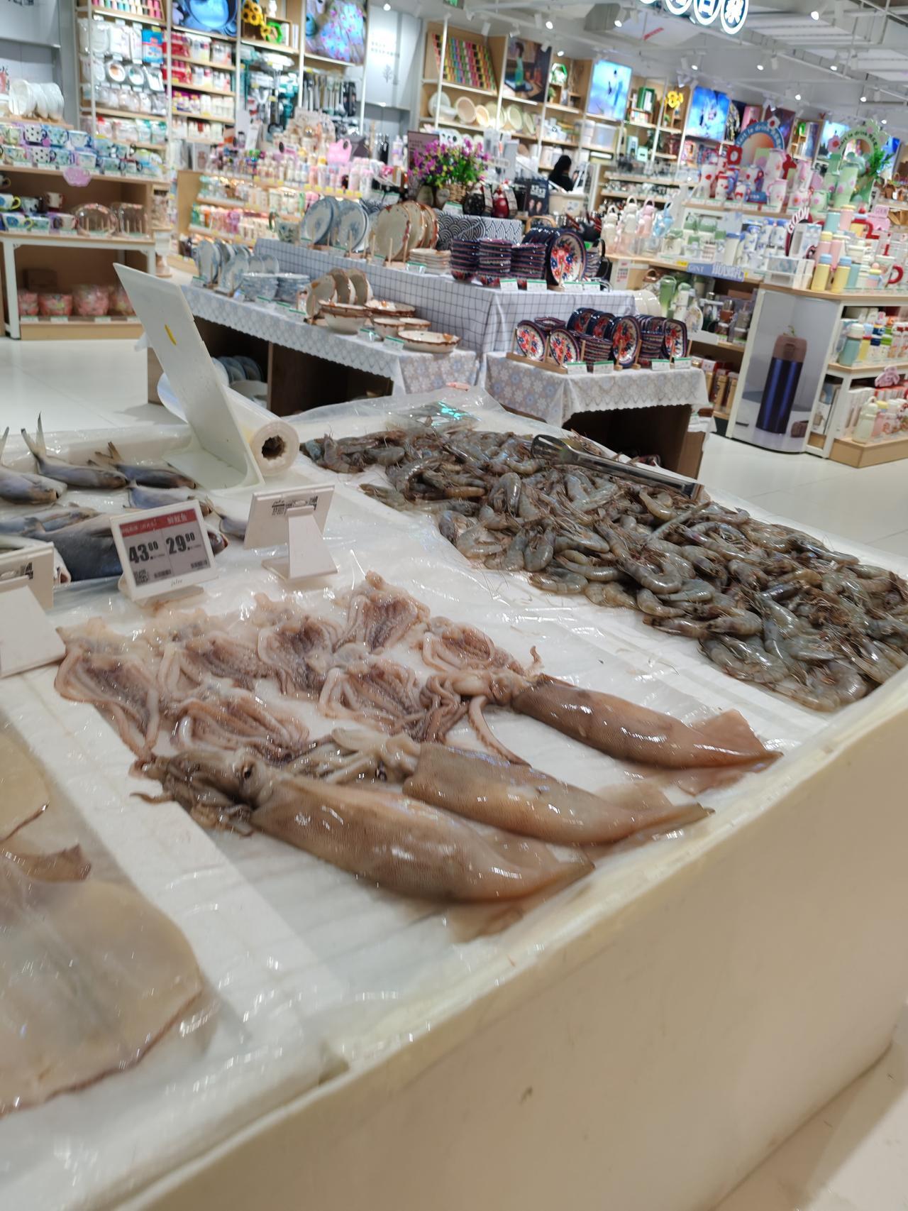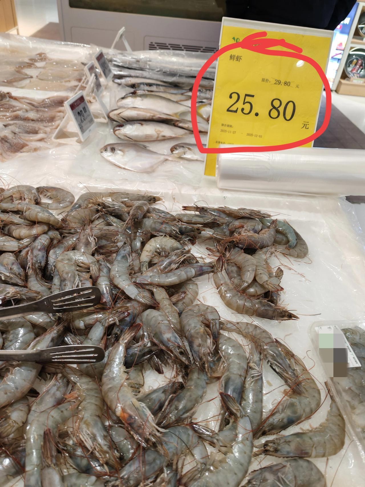 这是一个反常现象 11月2日,陕西西安。这是我昨天在超市拍摄到的几张图片,有点意外。 在水产区,突然发现海产品价格低了很多,鱿鱼便宜,大虾也很便宜,比如我拍摄到的这种鲜虾,似乎价格一路在跌。 以前单价一直在30元以上,长期性卖35或者32一斤,而近段时间,商场里边不停的以各种名义搞活动,价格变到了25.8元一斤,甚至店庆日那天20.8元一斤。 相比起以前,这价优惠了不少,但奇怪的是,价降低了,买的人反倒少了,似乎购买热情并不高,很多顾客看几眼便离开了。 大虾作为优质蛋白质,曾经很受欢迎,有老人和小孩的家庭特喜欢购买,而现在突然不再受青睐了,不知道这问题出在哪,你们那里的海鲜还畅销吗?