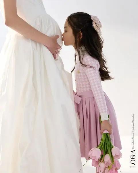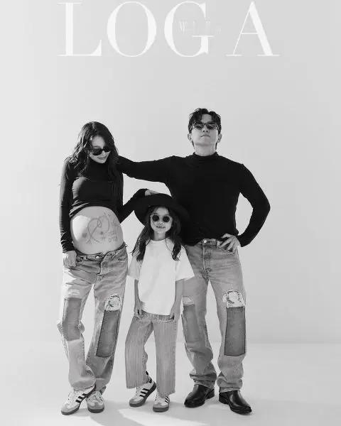 神话李玟雨「一家四口」全家福公开。6岁继女甜吻准妈妈孕肚 "Our Famil