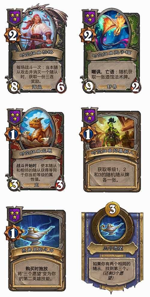 炉石传说 酒馆战棋S12新赛季“时空限界酒馆”将于12月3日直接上线!届时畸变和宠物系统将移除,带来全新系统:时空扭曲酒馆,并伴随大量随从轮换和新随从。全新系统:时空扭曲酒馆“时空扭曲酒馆”每局游戏会出现两次,每次都会呈上五张全新的特殊卡牌供你挑选。小型时空扭曲会在第6回合开启,大型时空扭曲则会在第9回合开启。这家商店中的卡牌是你在普通酒馆中无法找到的,包括:·专属随从·专属法术·现有卡牌的平行时间线版本·第二英雄技能(仅限小型时间扭曲)当你进入“时空扭曲酒馆”时,会获得两枚时光标记——这是一种替代铸币购买卡牌的新货币。商店中的卡牌售价为1或2枚时光标记,未使用的时光标记将在回合结束时消失,请务必明智规划!“时空扭曲酒馆”遵循一套独特的规则:你无法冻结或刷新时空扭曲酒馆。你的手牌、场上随从以及英雄技能在此无法生效。如果购买卡牌导致你的手牌数量超过上限,手牌上限将暂时提升以容纳这些卡牌。时空扭曲卡牌无法与它们的普通版本进行三连。(例如:“时空扭曲卖艺者”只能与另外两张“时空扭曲卖艺者”三连,而不能与“南海卖艺者”混用。)