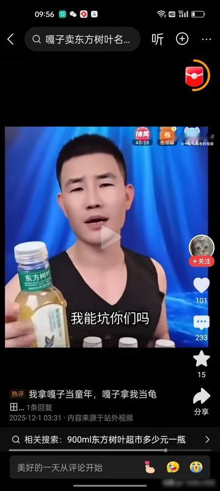 我估计嘎子都没有去过超市买东西,价格随口就来,会被笑掉大牙的。 咱就说卖货吧,不是不能接地气,但最基本的市场价得摸清楚啊。东方树叶900ml的,我上周刚在便利店买过,7块钱一瓶;超市搞活动时,10块钱能抱走两瓶。这要是真按“十块钱一桶”卖,要么是没做功课,要么是当观众没逛过超市,哪能这么糊弄人? 再说这东方树叶,确实不是谁都爱喝。我第一次喝也皱眉——没甜味儿,还有点涩,跟喝凉白开泡茶叶似的。但现在年轻人就认这口“无糖健康”,办公室里一堆人当水喝。它难喝?可能是没喝惯,但人家定位本来就不是“甜水”,是给注重控糖的人准备的。 最逗的是对比直播风格。人家宇辉卖货,能给你讲茶文化、讲生活美学,卖货倒像顺带的;嘎子这儿倒好,除了喊“家人们冲”,连价格都能说错。卖货不是喊口号,得有诚意、懂行,不然观众买一次就不会回头了。