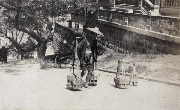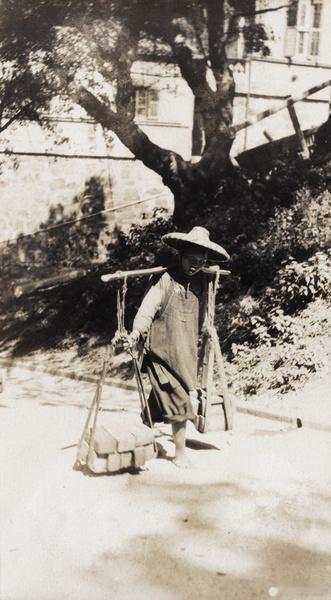 建筑工人运输砖块,香港,1920年