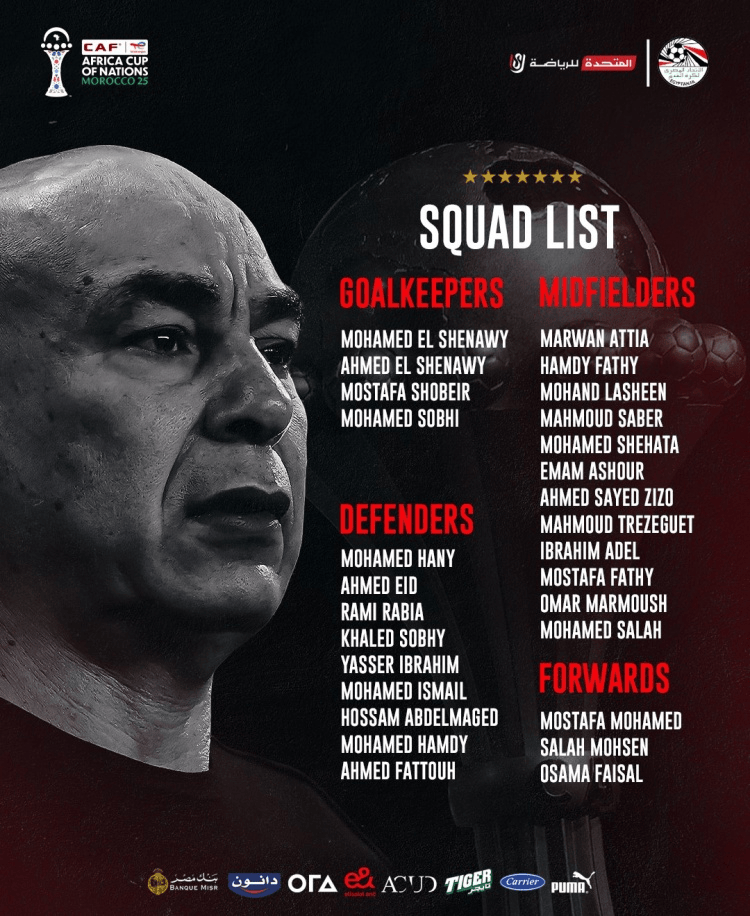 埃及国家足球队主教练易卜拉欣-哈桑证实,参加非洲国家杯的最终球员名单将于12月11日提交给非足联。埃及队将于12月3日开始公开集训,然后于12月7日进入封闭集训,备战12月14日在开罗体育场与尼日利亚的友谊赛,之后于12月17日前往摩洛哥,备战在摩洛哥举行的2025年非洲国家杯。