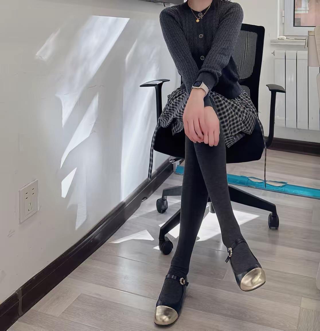 冬日灰调暖暖穿搭 上身是灰色带扣的毛衣,下身是格子百褶裙,腿上的灰色裤袜是羊绒的,配上黑金玛丽珍,,整体灰色系灰穿搭,尽显高级感。 灰色系简约穿搭