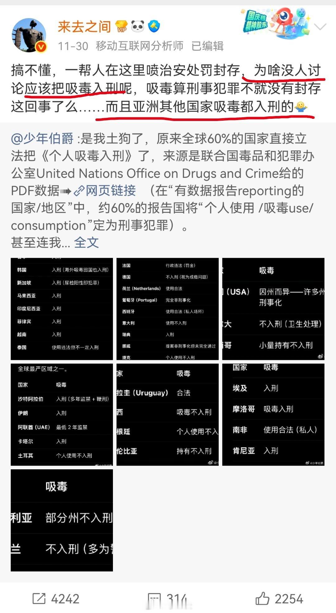 某大V对专家的“对吸毒人员我们要提供给他回归社会的一个机会”进行回应。此前这