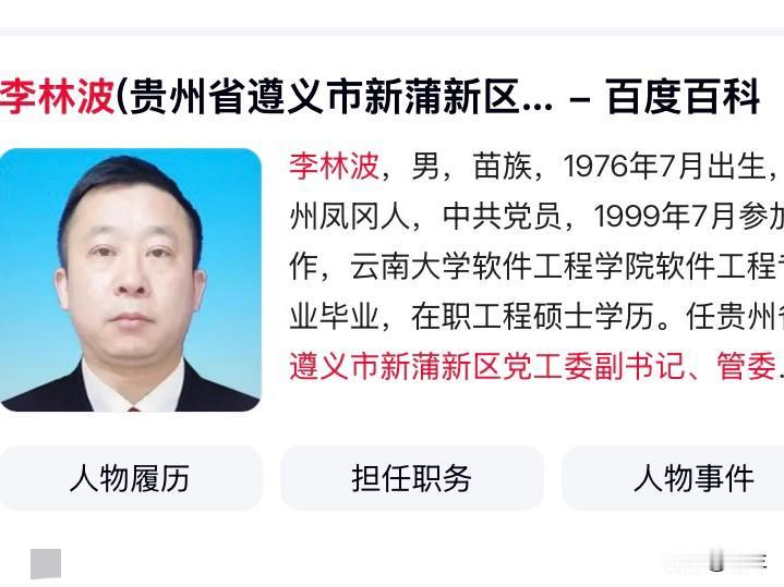 今天贵州的李林波上了热搜 他是1976年出生的贵州凤冈人 他长期在遵义等地工作