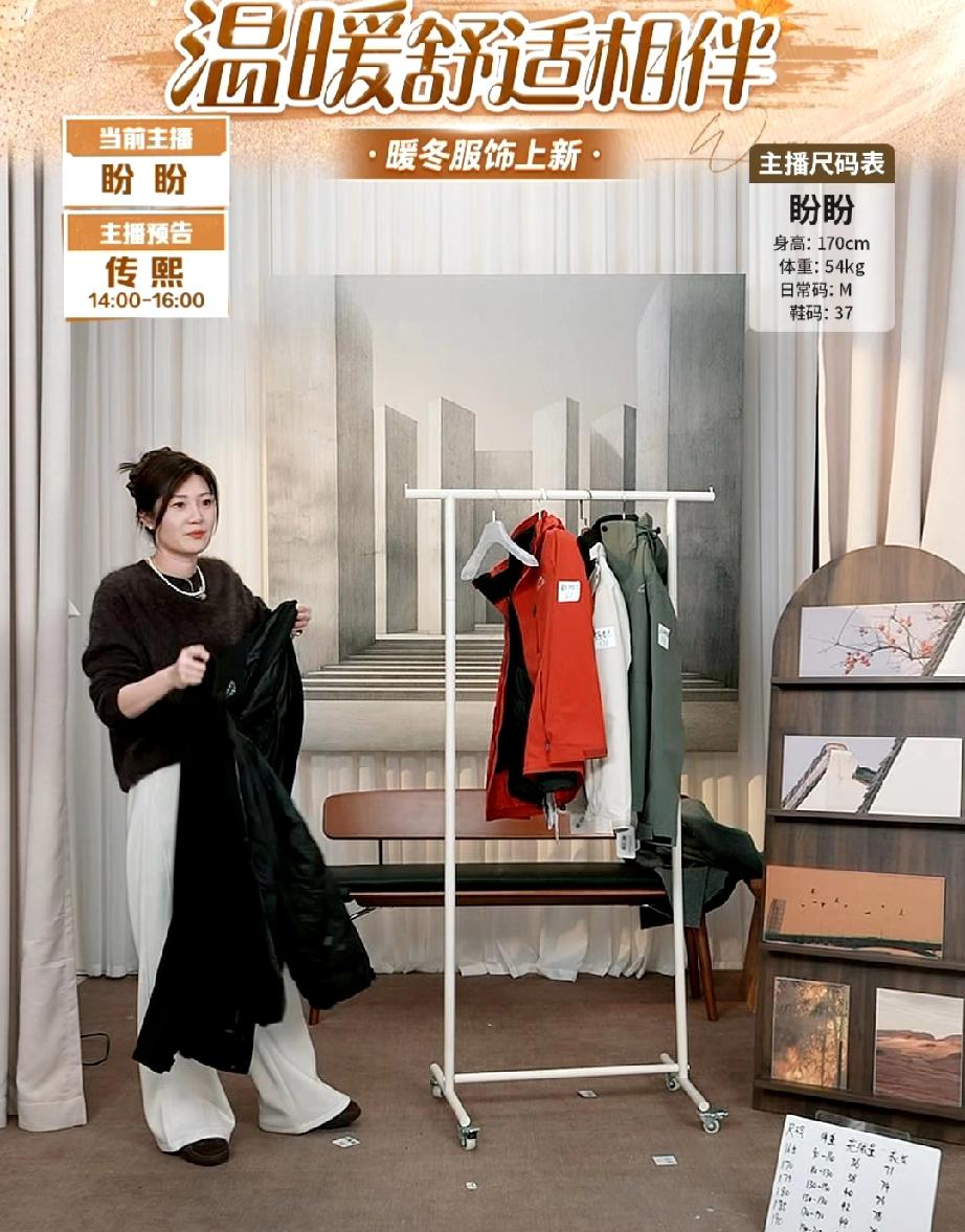 盼盼真有趣,说着说着把自己说饿了。刚刚盼盼在讲一款二合一羽绒服时说:“在陕西二合