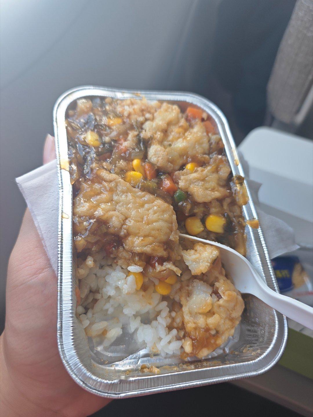 东航的飞机餐里居然有一小盒纯净水?!不是,既然你后面要给我发一瓶水,为什么又要在餐盒里塞一盒水呢?难道一开始塞的是酸奶,后来被“反酸奶人士”投诉了?那我就不懂了,你这米饭是蒜香炸鱼排味的~难道不怕“厌蒜人士”和“厌鱼人士”的投诉奇妙