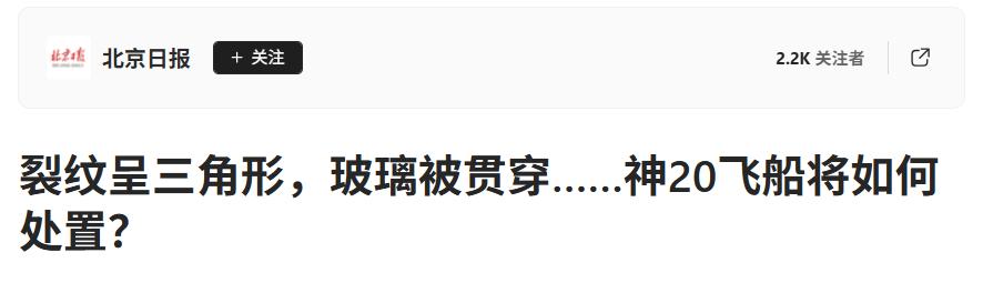 撞击情况首次披露!2025年12月1日,神20飞船撞击情况首次披露:悬窗玻璃被贯