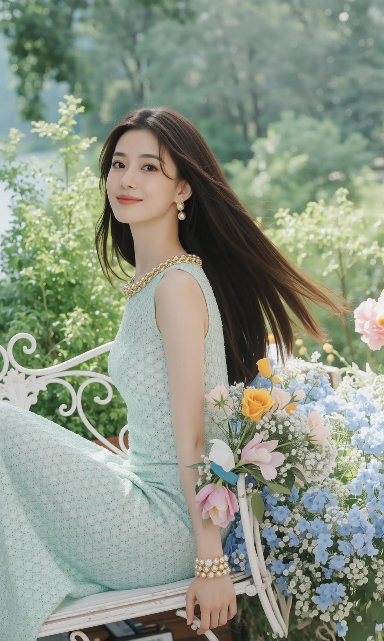 发梢漫过肩时,风也偷藏了半缕香 眼波是未漾开的湖,深邃而美丽 她坐处,花便忘了怎