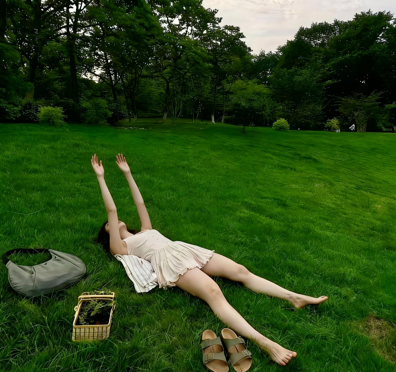 把自己摊在这片绿里,风裹着草香往领口钻,连呼吸都慢成了春天的节奏~ 光脚踩在软乎乎的草上,裙摆沾了点细碎的叶,才懂“放空”不是闲着,是让自己和自然接了个轻软的吻。 高雅气质美女 裙摆上的阳光 草地的治愈感 长腿控