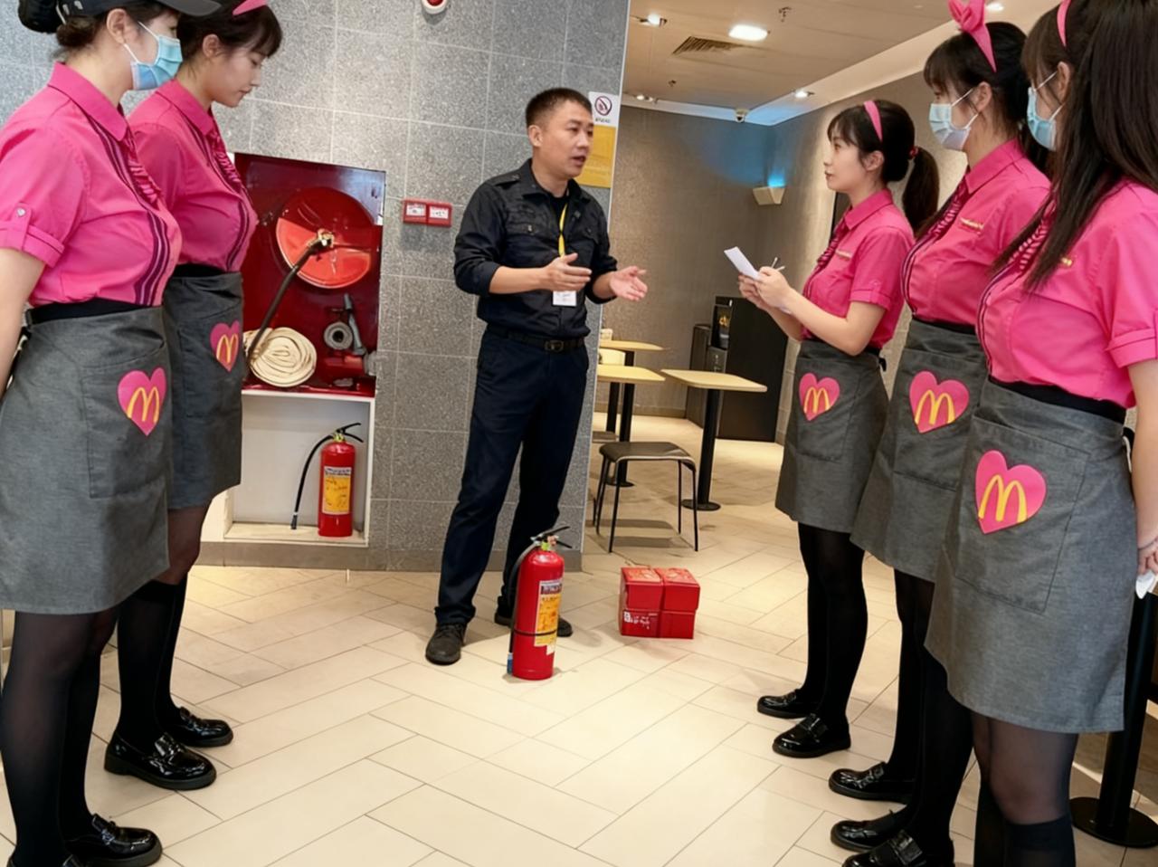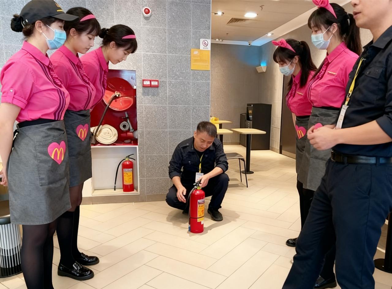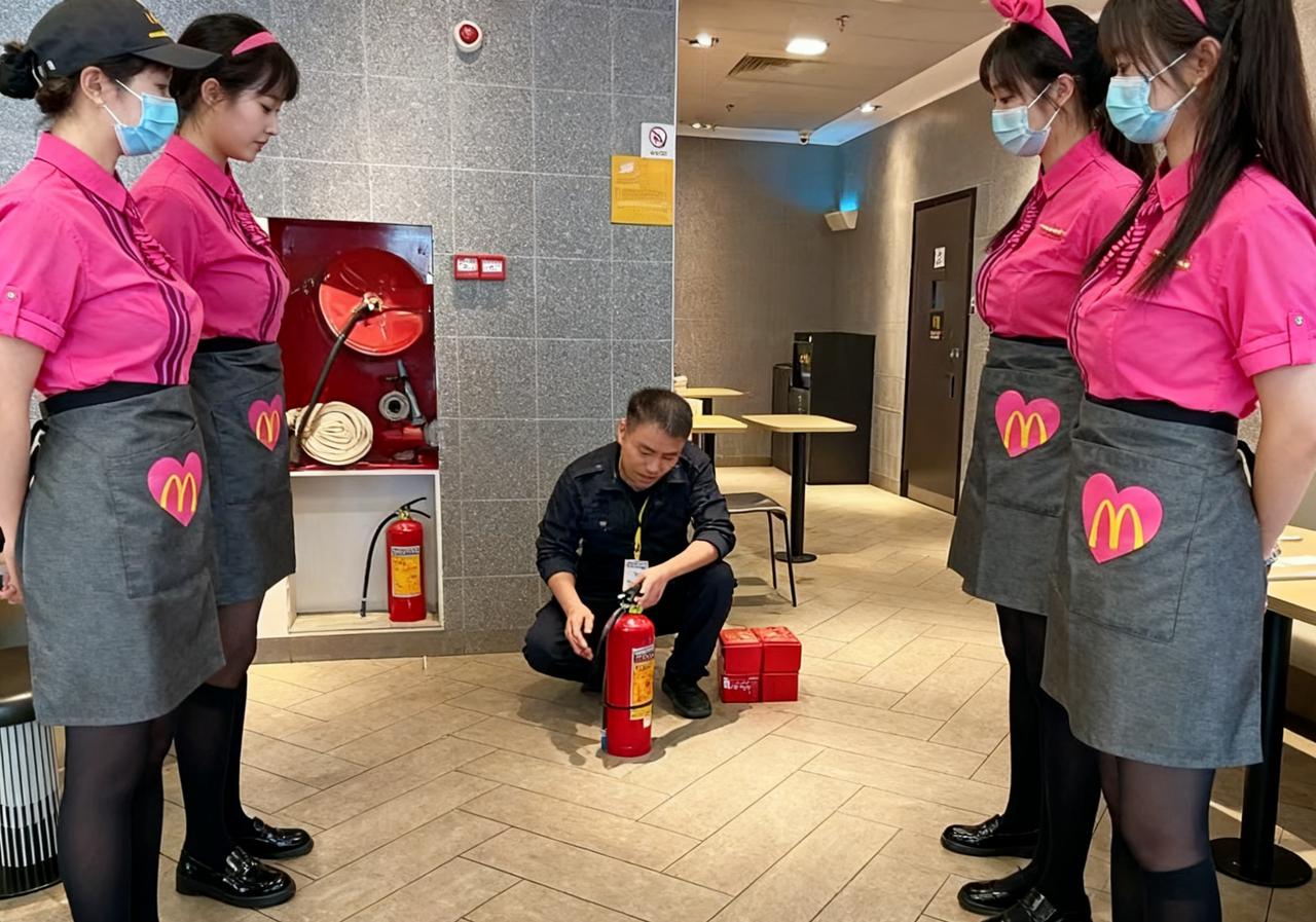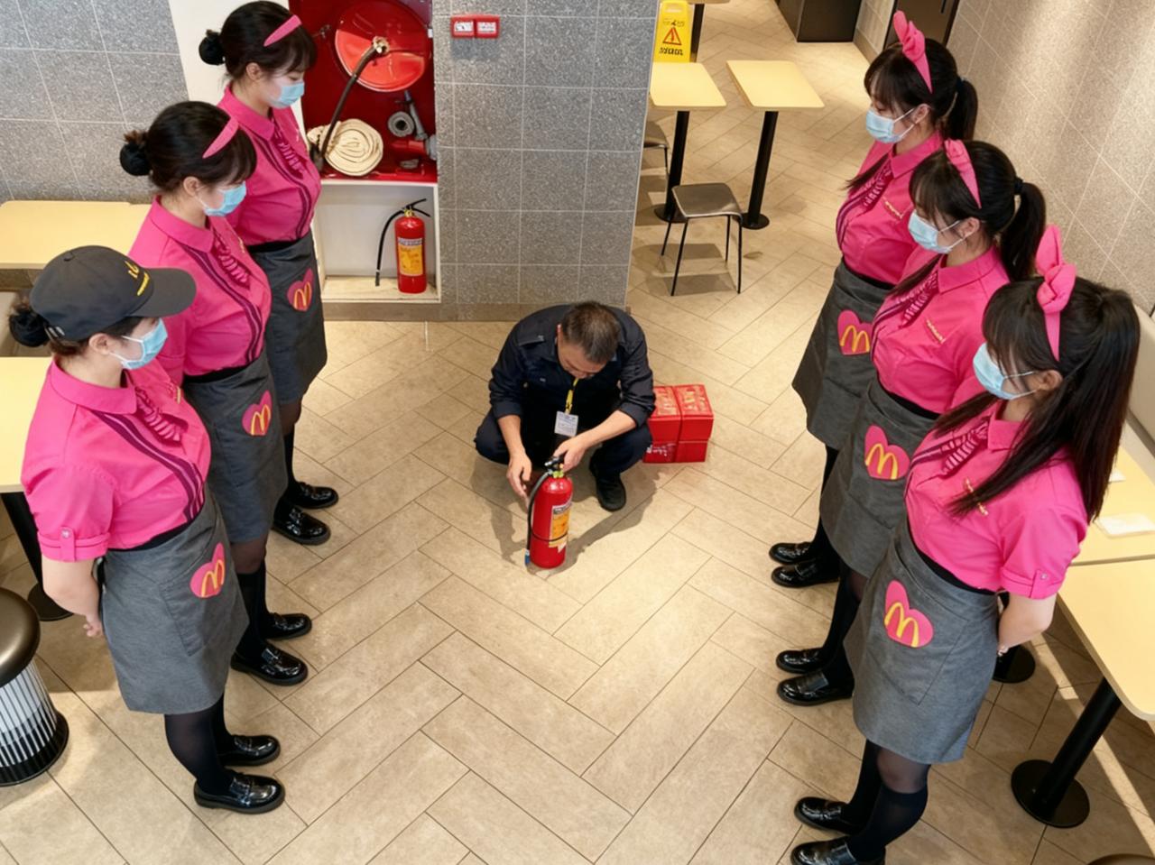 我的今日状态:😁轻松愉快 我这里的天气:☀️晴天 给麦当劳小姐姐大姐姐消防培训,有点儿紧张。