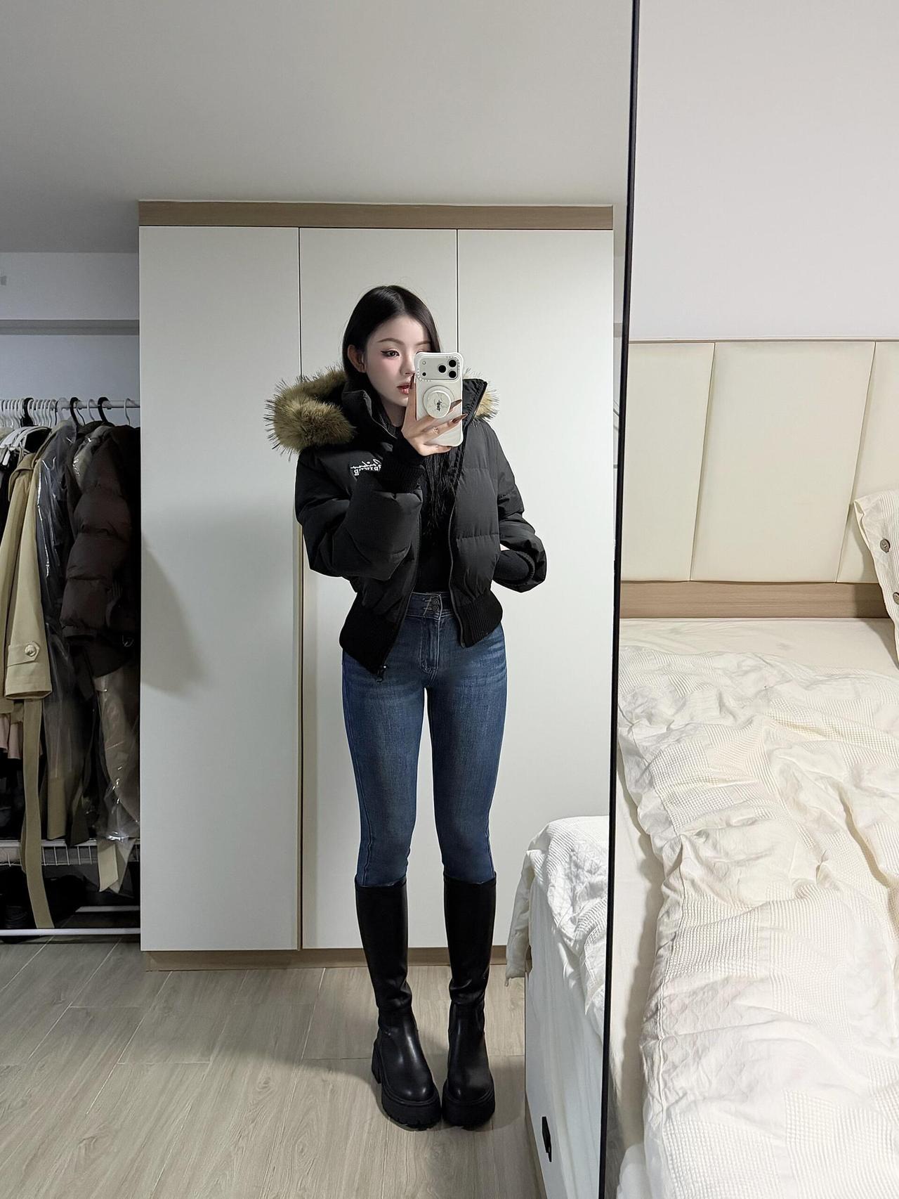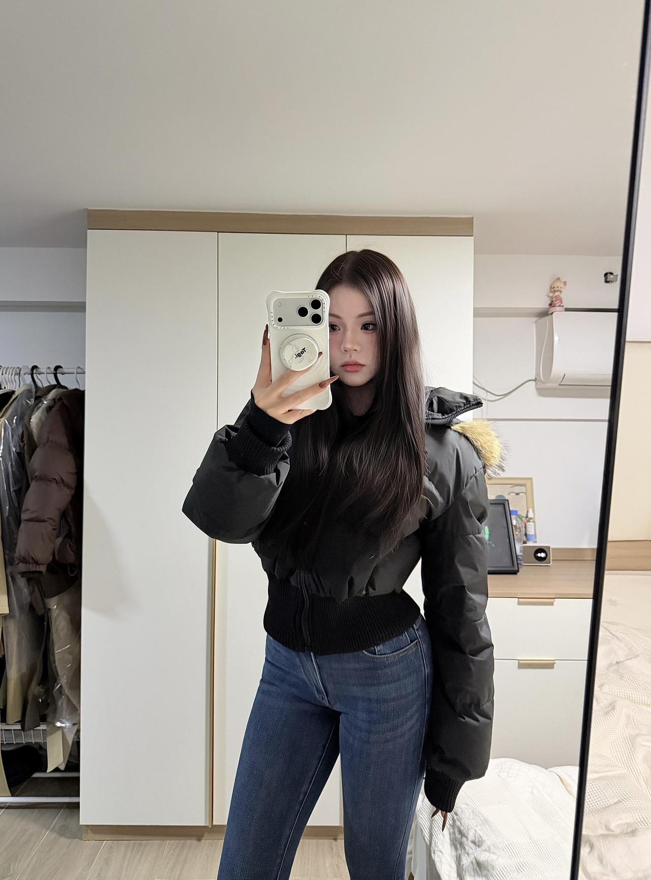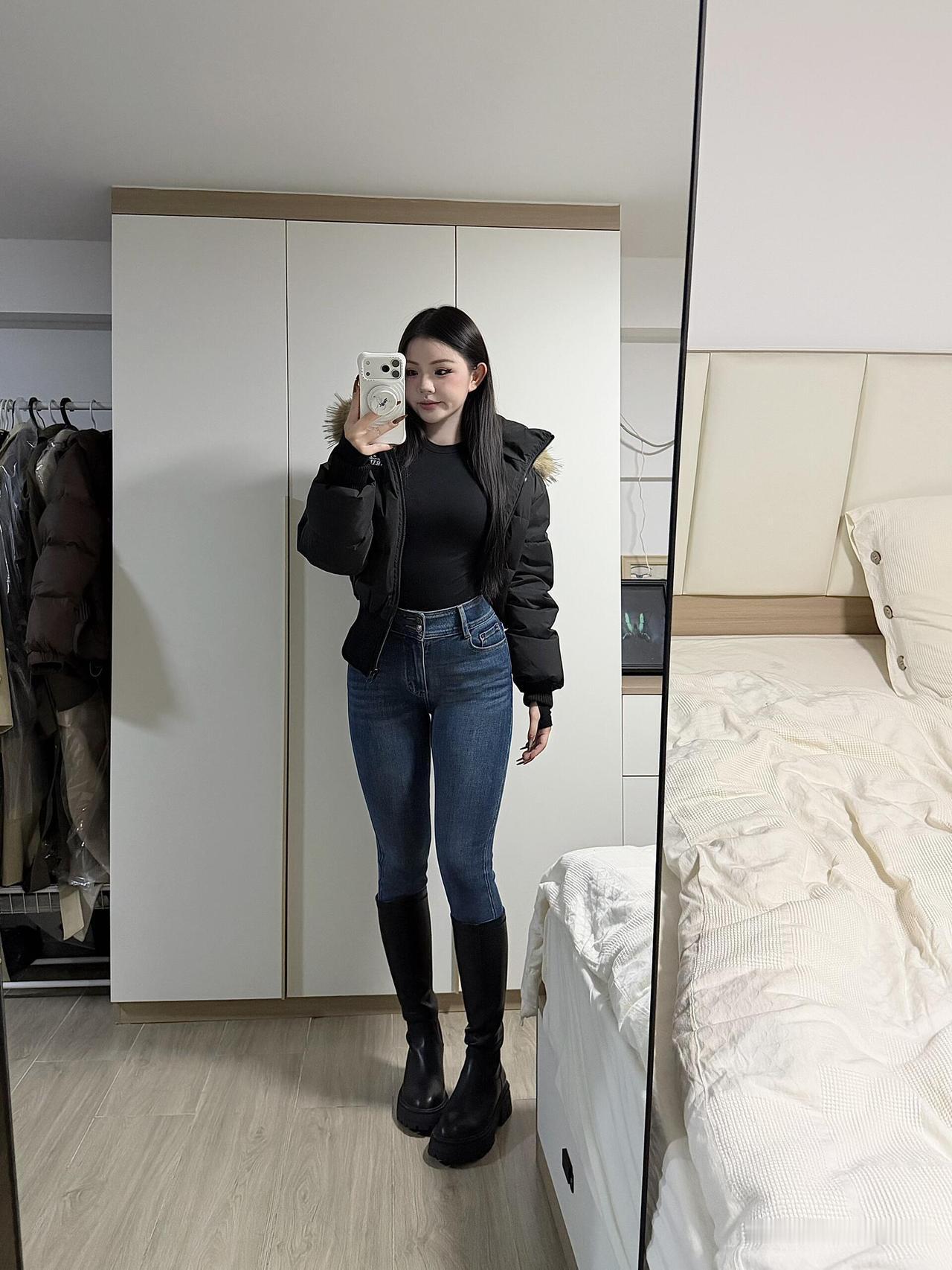 降温了[燃烧的心] 谁还没在房间镜子前臭美过啊!拉上窗帘开盏小灯,对着镜子左扭右看,羽绒服配牛仔裤,转个圈看背影,连头发丝儿都想摆弄出最佳角度。 别管外面啥天气,此刻镜子里的自己就是主角——扯扯衣角、理理刘海,甚至对着镜子比个拽拽的表情,心里默念“今天状态不错啊”。这种偷偷给自己打气的小快乐,比刷十条夸人的评论还带劲。 生活嘛,偶尔就得自恋一把,镜子是最好的观众,怎么臭美都没人笑,舒服! 冬日女神穿搭 大降温穿搭 降温穿搭技巧