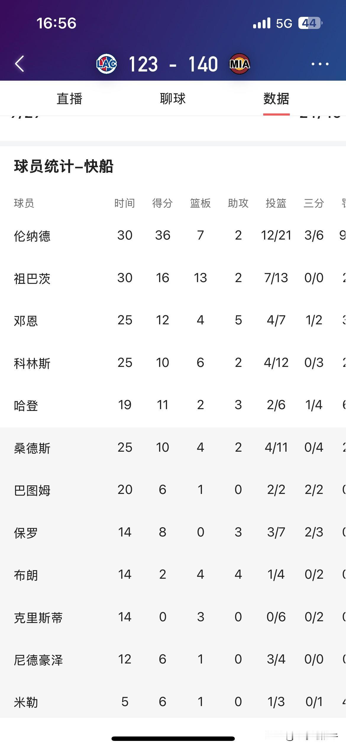 快船与热火的这场比赛着实有些离奇,哈登高呼“大家都拉开,我单打”,那操作可谓是一气呵成,哈登也的确火力全开,然而全场6投仅2中,拿下11分2篮板3助攻,最后累得气喘吁吁。 泰伦卢的执教还挺深人情世故,见哈登表现这般“出色”,直接让哈登下场休息了,哈登全场仅出战19分钟。