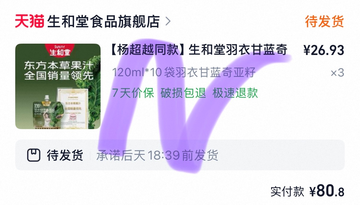生和堂新出的羽衣甘蓝奇亚籽口味真不错,天气转凉每天都加热水中和一下喝起来也不甜,又回购了。杨超越生和堂全球品牌代言人