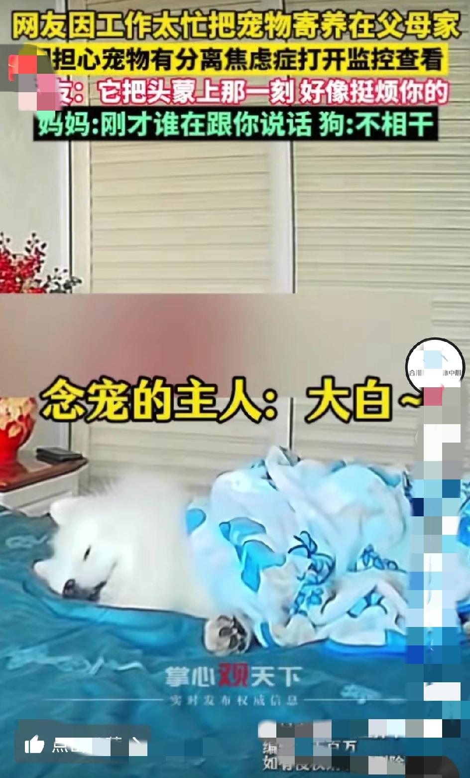 笑不活了!山西一小伙的经历, 直接戳破“宠物离不开主人”的假象, 原来放不下的是铲屎官本人。 小伙工作忙把小狗送老妈家, 总担心它有分离焦虑, 忙完就扒监控。 结果看到小狗盖着被子在姥姥床上睡得正香, 喊它名字也只迷糊瞥了眼, 还拿被子蒙头装听不见, 半点没惦记他。 说到底,宠物只要有宠爱在哪都舒坦, 反倒是主人在单方面“情深义重”。 你们家毛孩子有没有过这种“把你抛脑后”的时刻?汪星人思维 狗误区 宠物糗事