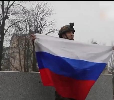 这里是地狱!俄敢死队挺进红军城。随时可能献出生命的士兵,还是勇敢挥出了旗帜。现场只有爆炸的声音。硝烟中,留下了勇士的背影。 战旗在,士气在。这一刻定格了悲壮瞬间……