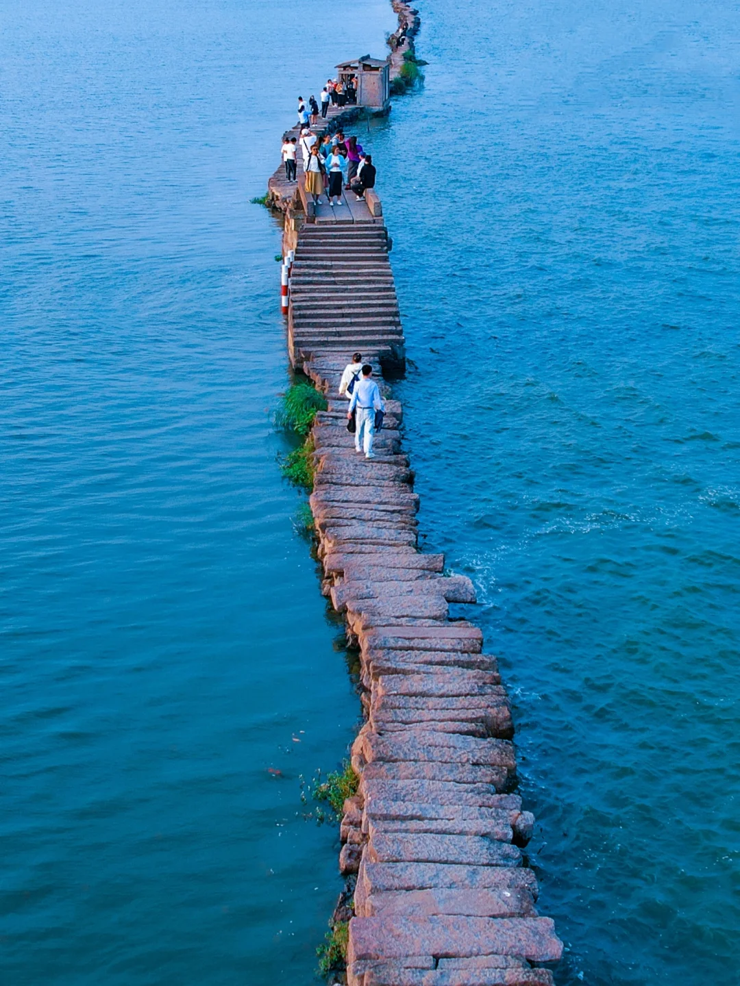 又称昂桑湖,明代建成的古纤道,走在石板堆成的桥上,感受历史的厚重