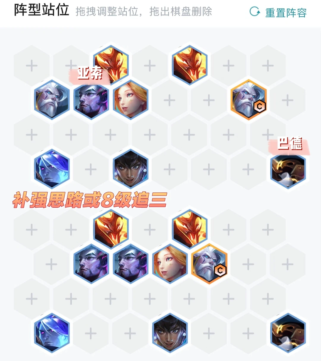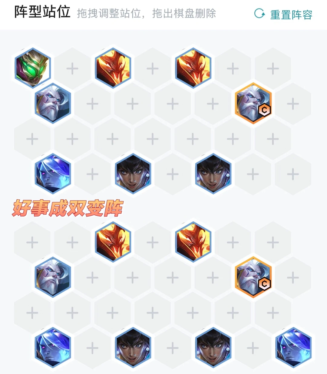 后期根据符文和抽牌情况可以变阵,有好事成双必须,卓尔加好事,挂机都有分。