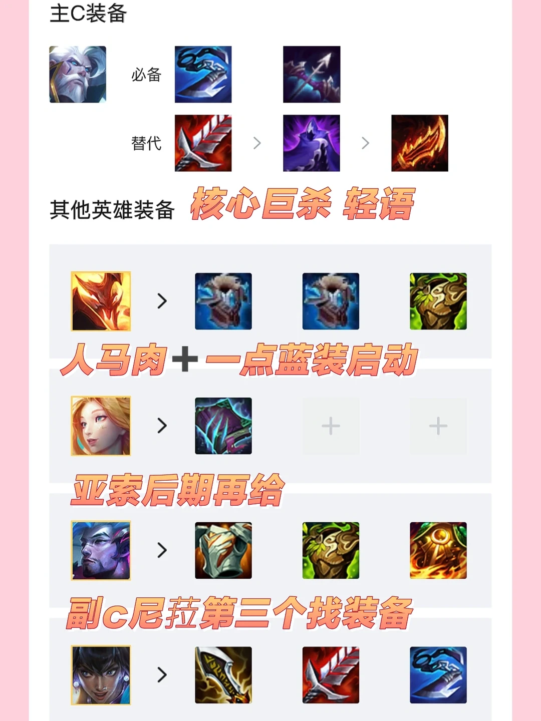[开箱R]装备思路:优先满足男枪的装备,其次是人马需要一点肉装和蓝量启动装备,开局打控制。副C是尼菈,最后多的装备再考虑给亚索和其他人。