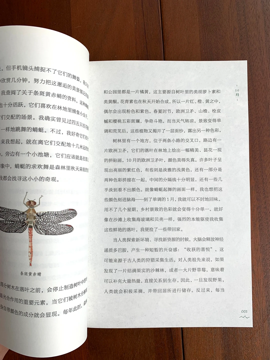 这是一本治愈身心的自然之书,书中描述了一个长期经受抑郁症困扰的女性,通过到森林、原野、海边等地散步,寻找着与四季有关的动植物,不断地进行自我治疗。这种方式帮她找回继续生活的勇气。在本书中除了能够觉察到大自然对人身心的治愈作用以外,还能感受到动植物的美好,在细致入微的语境里,我们也在感受着抑郁症患者内心的变化,感受到的是与命运抗争的不屈斗志,是如此的真实与积极。