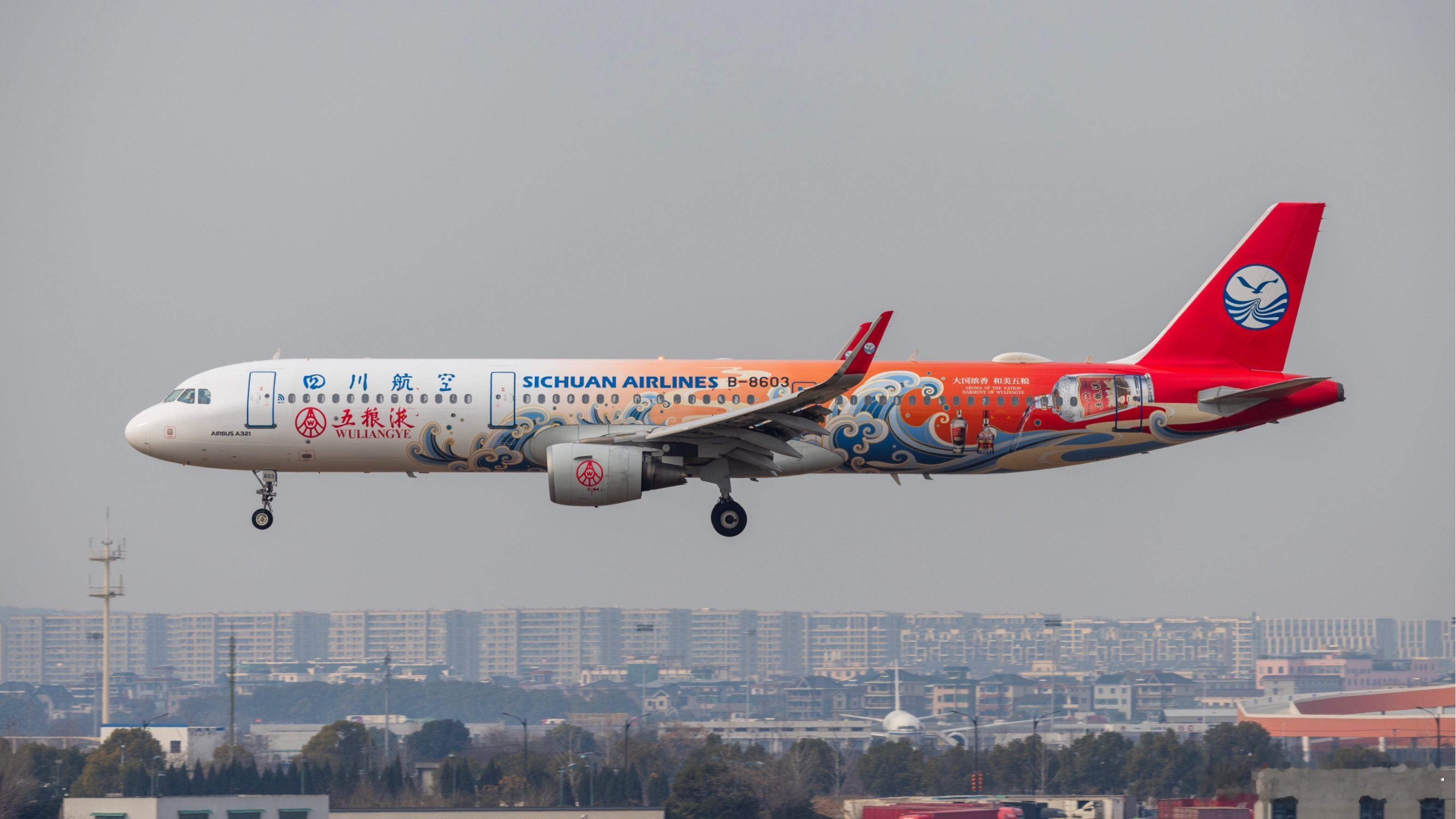不仅有五粮液机场,五粮液航空也呼之欲出11月28日,川航集团(四川航空集团有限责任公司)完成工商变更,五粮液集团成为其新入股股东;此前,川航集团此前由四川发展全资控股,此次变更后,川航集团将由四川发展持股54.1694%,五粮液集团持股45.8306%。川航集团当前是川航股份(四川航空)的最大股东,持有其40%的股份,还是成都航空的第二大股东,这也意味着五粮液开始深度涉足航空运输业。此前,五粮液集团与航空业的关联,包括涉足通航产业、宜宾机场被命名为五粮液机场(图1),以及冠名了川航多架飞机(图2、图3)。(图网侵删)