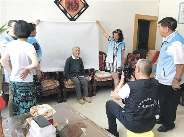 志愿者为社区高龄老人拍照。