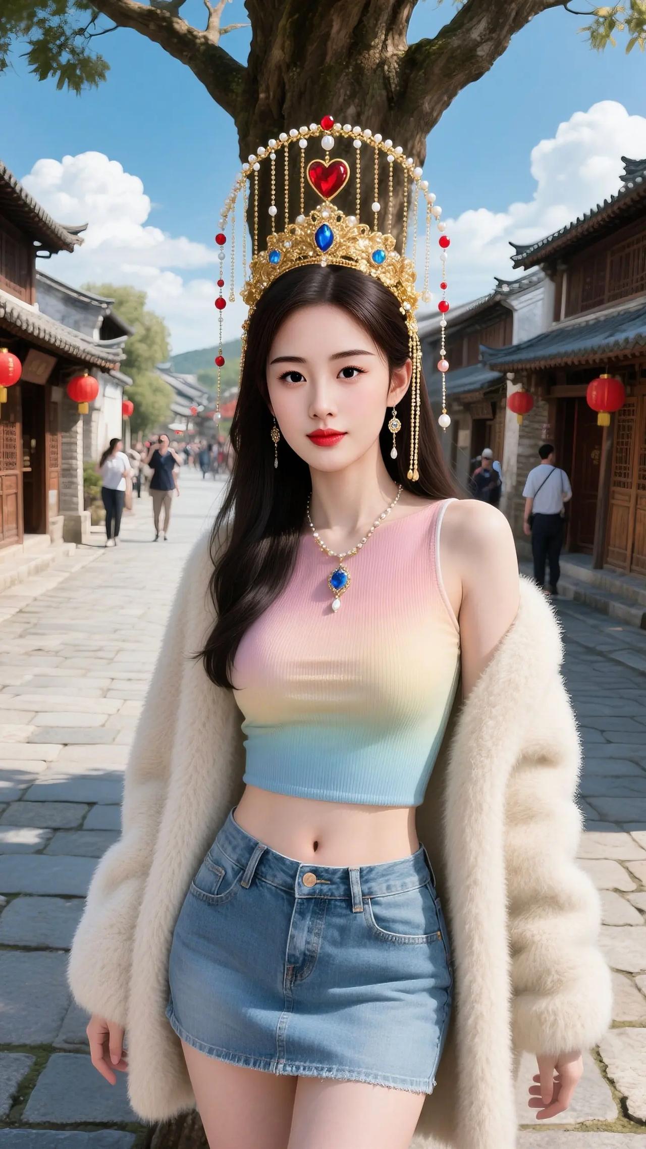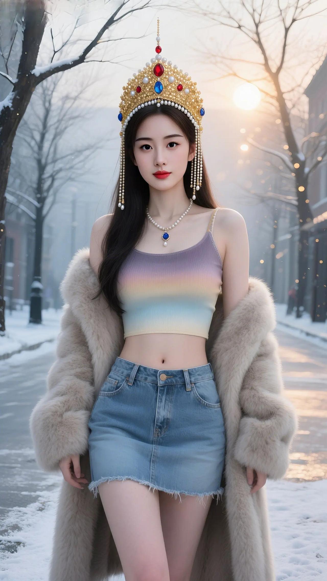 皮草穿搭 紧身牛仔裤 好身材好气质 ai