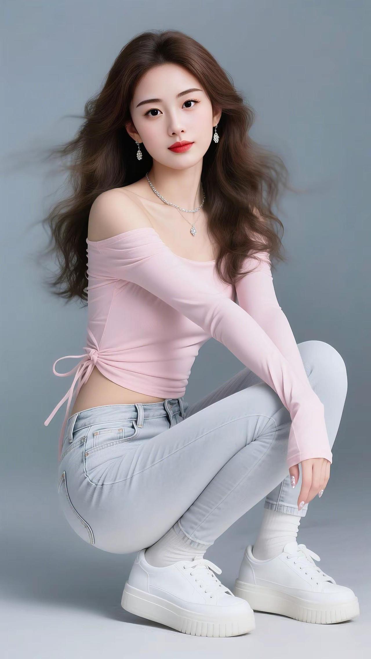 粉粉的露肩上衣+浅蓝牛仔裤,清爽又温柔💗头发随便吹了点弧度,感觉自带氛围感~