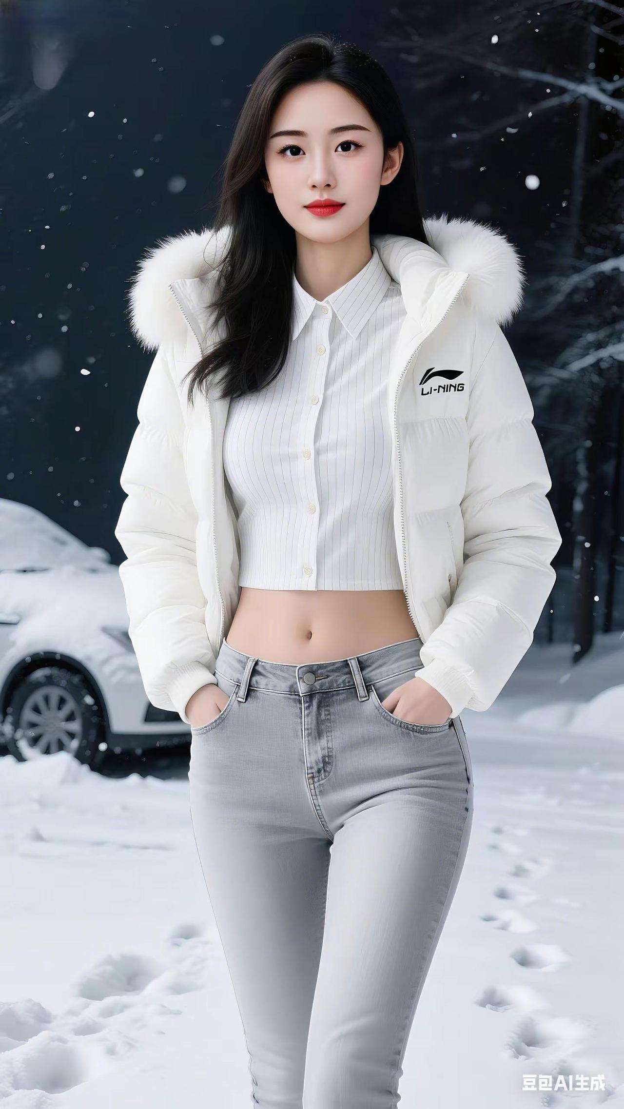 羽绒服穿搭 最美穿搭 雪景写真 ai