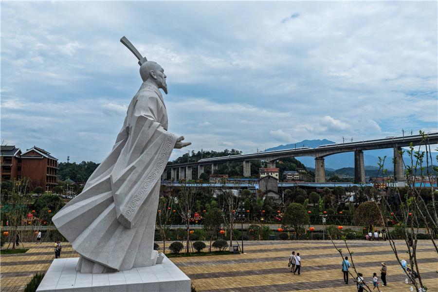 (图为天问岛上屈原雕像。怀化日报全媒体记者潘雨摄)