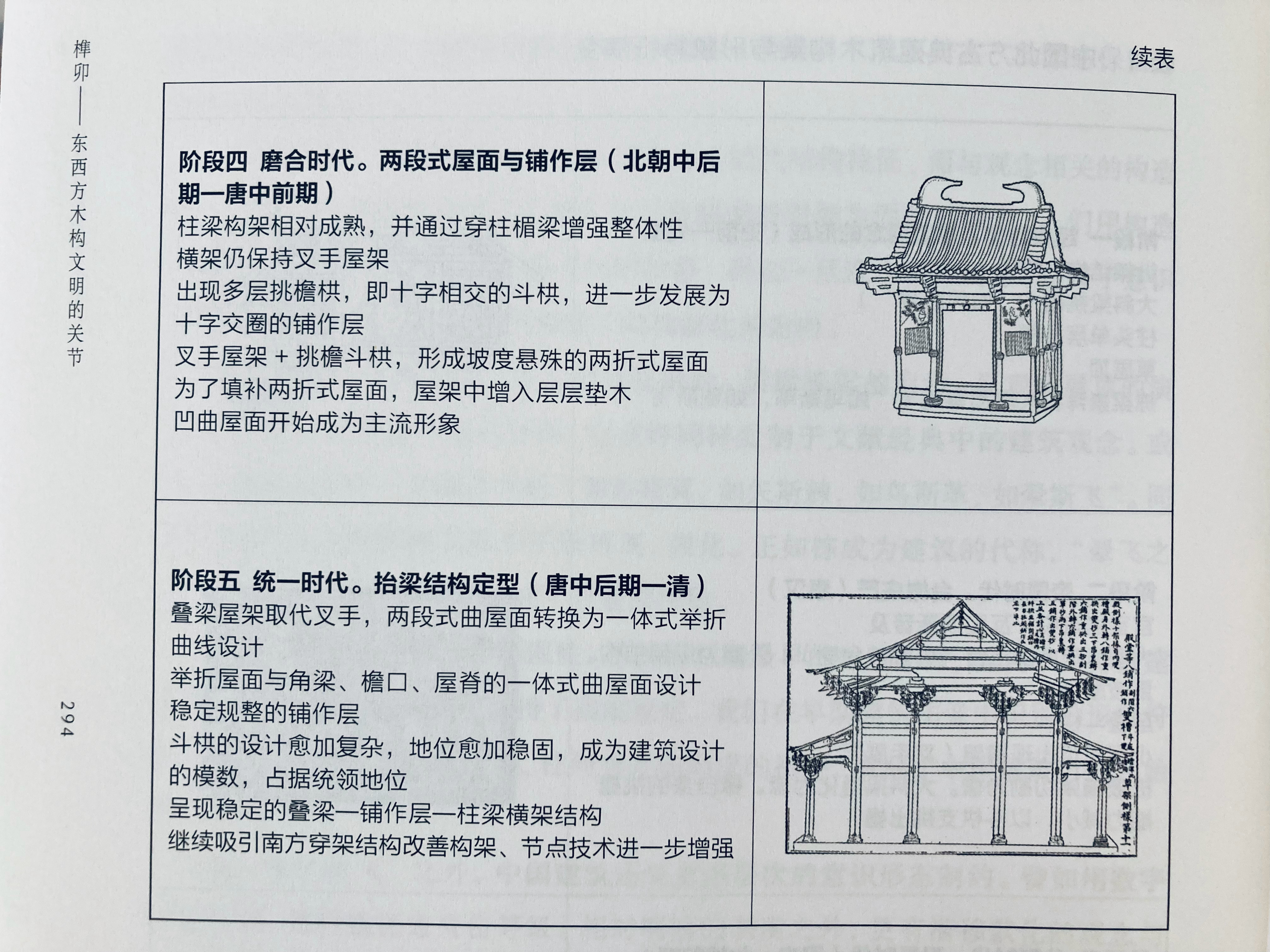 中国建筑历史形象在人们心目中相对“单调”,有两个层面问题,一是存世的地上建筑均为唐代之后,是中国建筑经历汉唐之间材料、结构剧烈转变,定型之后的状态。二是,即使经过材料、结构的剧烈转变,中国建筑一些决定性的特征仍然保持稳定。栋梁观念与凹曲屋顶正是中国建筑最为核心的元素。一个是建筑的精神领袖,一个是建筑的意向代表。借助它们,我们可以看到,中国建筑的结构手法有两种不同的动因:结构功能的理性需求与建筑观念的形而上指导。……建筑观念的产生往往来自功能性结构特征。而与观念相关的构造特征,它在技术层面的诞生、它被文化习俗接受并吸纳为固化的观念、人们用构造手段进一步强化该特征,是三个不同的阶段。而它一旦进入精神观念、跻身于意识形态,则反身限定、指定,甚至拗扭了结构演化的走向。……正因为意识形态高于功能理性,从战国时期最早的建筑图像,直到中国传统建筑的终章,中国宫室的形象保持了高度稳定。我们在早期建筑图像中识别的形象符号:宏大的屋顶、飞扬的檐宇、柱列与斗栱形成的秩序,贯穿了中国建筑历史之始终。在“栋宇翚飞”之外,中国建筑还受更多层次的意识形态制约。譬如用数字沟通宇宙,用构造标志身份等级。相对明确的制度之外,更有潜移默化的观念与习俗。而对于建筑观念的固守与形式意向的追求,事实上关闭了其他结构形式(譬如进一步探索三角屋架的能力)发展探索之门。更不用提宋代之后,建筑结构的形式与构件尺度直接受到官式建筑法规的严格的等级规定,则进一步锁死了中国建筑在形式上的其他可能性。——刘妍《榫卯:东西方木构文明的关节》