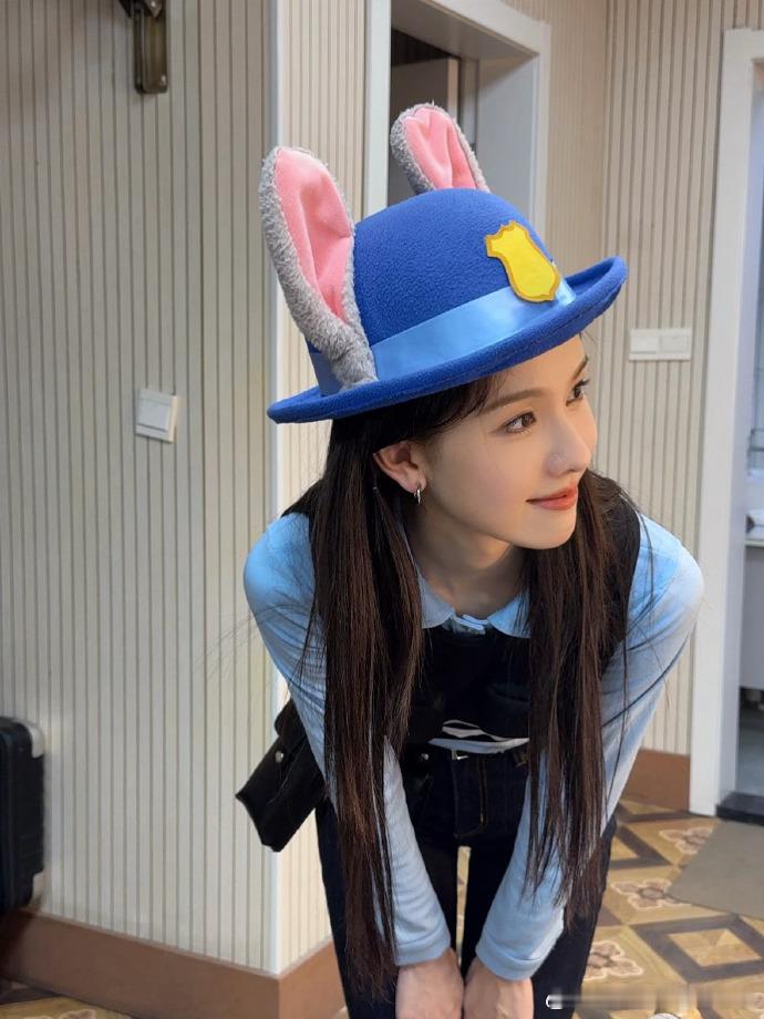 陈都灵cos兔子警官朱迪陈都灵 cos《疯狂动物城》朱迪太吸睛!兔耳发箍 + 蓝色警服,眼神灵动,清冷与萌感完美融合。