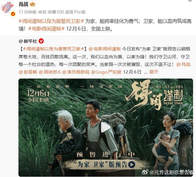 肖战说为家卫家肖战得闲谨制12月6日全国上映 肖战演绎的莫得闲太动人!从逃亡工匠到反抗领袖,“为家卫家” 的呐喊照亮乱世黑暗。