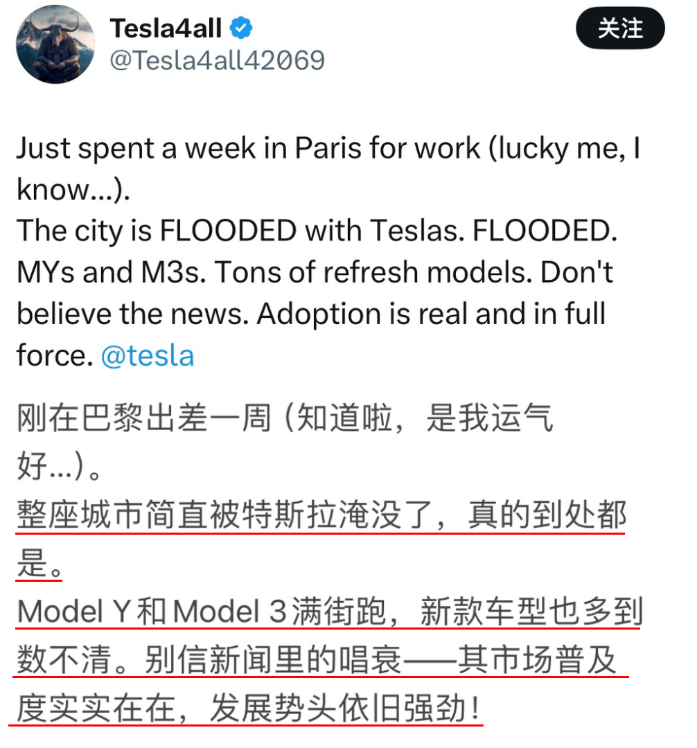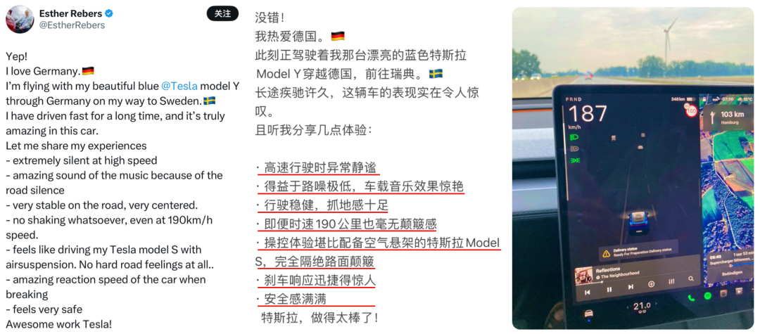 欧洲1-10月电动车销量榜出炉:特斯拉Model Y稳稳拿下销量冠军近日,海外权威媒体Clean Technica公布了今年1至10月欧洲纯电动车销量排行榜。数据显示,特斯拉Model Y累计销量超11.6万辆,稳居最畅销的纯电动车,展现出强劲的市场统治力。持续领跑销量榜的成绩背后,是特斯拉在安全、智能、性能与空间等多个维度展现出的硬核产品实力。此前,权威汽车评测机构Edmunds对200多款乘用车展开综合测评,Model Y凭借全面出色的产品表现被评为“2025年最佳车型”。不少车主在社交平台上的自发分享,也在用亲身经历证明:好产品就是最好的广告。其中,车主EstherRebers就兴奋地晒出长途驾驶感受:“高速行驶时静谧又稳健,即便时速达到190公里也同样安静平稳。并且刹车响应迅速,全程安全感拉满!”在欧洲街头随处可见的特斯拉车辆,也成为热销成绩的有力证明。网友Tesla4all42069 近期在巴黎出差时观察到,整座城市几乎快被特斯拉”淹没“了:“Model Y和Model 3满街跑,那些唱衰特斯拉的声音完全站不住脚:市场普及度实实在在,发展势头强劲!”特斯拉 新能源汽车 买车你听那谁的吗