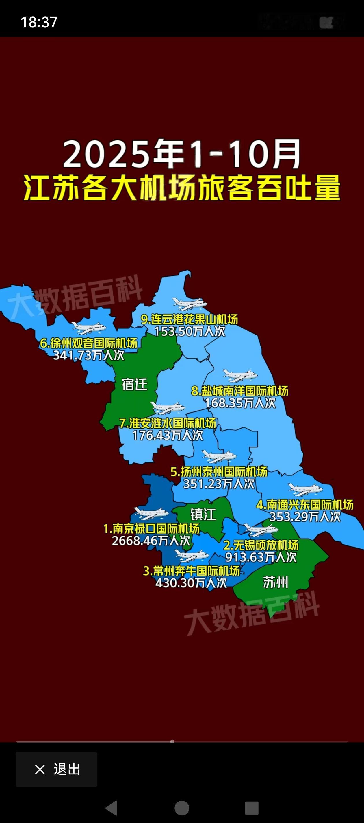 今年前10个月江苏各机场旅客吞吐量统计结果出炉,这个数据与各地经济发展水平是持平的。但是作为省会南京禄口机场与杭州差距还是非常大,苏北淮安、连云港和盐城三个机场旅客吞吐量都没有能突破200万人次,是江苏最少的。 盐城机场只有168.34万人次,列倒数第二,为什么会这么少呢?首先工业基础薄弱,经济发展不活跃是根本原因。其次,受军民两用机场性质限制,机场基础设施建设起步晚。第三,机场等级低跑道短,不能起降大飞机,是江苏唯一的4D机场,也是全省等级最低的。第四,机票价格没有优势,红眼航班多 ,没有过夜飞机,经停航班选择性小,这些也是影响客流的原因。另外,盐城近些年高铁网络不断完善,分流了不少旅客。 但是,盐城机场是全省乃至全国距离主城区最近的机场,这一点也是有很大优势的,在城区通过全程高架可以方便快捷到达机场,一般只需要半小时左右。同时,盐城机场已经计划延伸跑道提升等级了,届时一定会增加航点航班,旅客人数也能得到增加。