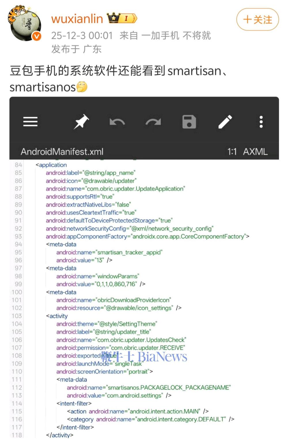 12月3日消息,博主@wuxianlin今日分享了豆包手机的系统软件,发现了锤子科技遗留字样,称还能看到smartisan、smartisanos。
