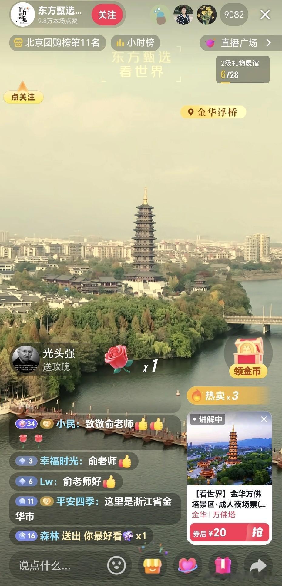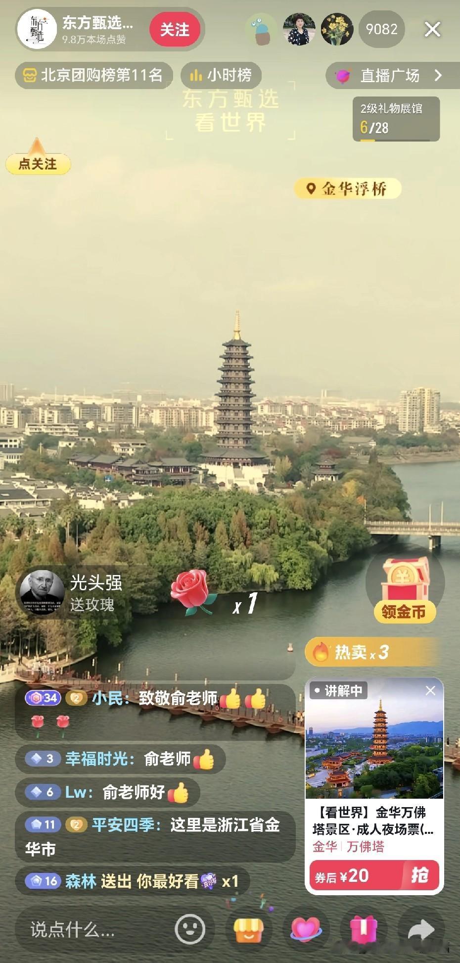 闲着没事,躺在床上看俞老师直播,俞老师多好呀,第一碗骨头汤给了冬冬。接下来又让给旁边的美女,最后才是自己。在边走边观赏边讲解的过程中,东东也是在不断地和嘉宾互动中,俞老师想着的永远是他身后的熊孩子们,如今又多了我们这些消费者,幸福幸福! 青山绿水,浙江金华真美!那座浮桥真想上去走一走!跟着俞老师长见识了[笑哭]。