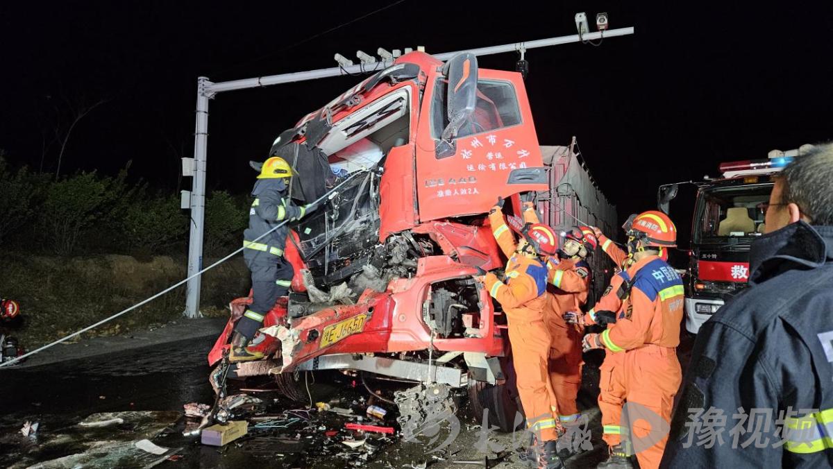 凌晨货车追尾 安阳消防30分钟破拆营救