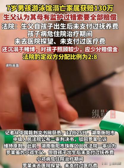 “不配为人父”湖南衡阳,一女子未婚生子。儿子游泳溺亡,游泳馆赔偿女子130余万元,前男友认为女子没有看好儿子,要求女子把130多万赔偿款全部给他。女子拒绝:儿子自打出生起,一直都是自己在抚养照顾,对方没有出过任何抚养费,儿子病危,前男友也没有来看过,双方对簿公堂。 邓女士坐在沙发上,手里攥着纸巾擦拭着哭肿的眼睛。自从儿子小邓溺水去世后,家里弥漫着一种压抑的沉默,空气里像是凝固了的悲伤。 她心里空落落的,眼眶发热,手指因为紧握而微微发白。 突然,门被猛地推开,门框发出刺耳的吱呀声。邓女士心里一紧,抬头一看,是罗某。 他的脸涨得通红,眉毛紧蹙,眼神里带着怒火和指责,仿佛整个人都在冒烟。罗某大步走进屋,声音像刀子一样刺耳:“你咋看孩子的,有你这当妈的吗?” 邓女士的眼泪再次涌了出来,哭得已经肿胀的眼睛里满是悲愤和委屈。她咬着嘴唇,死死地盯着罗某,声音颤抖却坚决:“滚出去,你给我滚!” 罗某的步子没有停,继续逼近,语气咄咄逼人:“你把我儿子害死了!你不配拿赔偿款,把赔偿款给我!” 邓女士像被雷劈中一般,整个人僵住了。泪水模糊了视线,她深吸一口气,几乎是吼出来的:“你要不要脸! 儿子送医院的时候,我给你打了多少电话,让你来看看儿子,你咋说的?你说你不来!现在知道赔偿款下来了,你才来了?你还有没有人性啊!” 她的声音越来越大,带着压抑多时的愤怒和心碎,“这些年,儿子吃喝拉撒,是我一个人撑着,你出过一分钱吗?你从来没有照顾过他,连病危的时候都不闻不问!” 罗某被她的吼声震得有些愣住,脸上的怒火与震惊交织。 他的手紧握成拳,眼神里闪过一丝慌乱,但随即又恢复了愤怒,嘴唇微微发白,似乎想再说什么,却被邓女士的情绪和气势压得无法开口。 邓女士此刻全身颤抖,泪水顺着脸颊滑落,她用力拍打着沙发的扶手,像是在宣泄多年累积的委屈和痛苦。 “你知道吗?从儿子出生到现在,我夜夜失眠,看着他一天天长大,我付出了多少心血!你以为父亲的身份就能理所当然地拿赔偿款吗?你根本没有资格!” 她的嗓子嘶哑,声音中带着哭腔,但每一个字都像利刃,刺进罗某心里。 房间里寂静得只能听到两人沉重的呼吸声和窗外风吹过的声音。罗某低下头,拳头慢慢松开,心里有一种说不出的愤懑和无力。 邓女士站了起来,双眼通红,手指颤抖着指着罗某,几乎是咬牙切齿地说:“你算什么父亲?从来没有为孩子做过一点点! 你没有尽到责任,没有出过一分钱,现在竟然还想把赔偿款据为己有?滚!滚出我的家!” 罗某指着邓女士,脸涨得通红,声音震得屋子里都回荡着回声:“咱俩法庭见!”说完,他摔门而去。 没几天,邓女士就接到了法院的传达书。法院的传达书字里行间冷静而严肃,清楚地写着案件受理信息和开庭时间。 法法庭上,法官详细听取了双方的陈述。邓女士哽咽着说“孩子从出生起,一直都是我在照顾,他的吃喝拉撒、学习娱乐,我全都承担。 罗某从未支付过一分钱的抚养费,自从我们分手后,他更是没有探望过小邓。孩子病危的时候,我给他打了无数次电话,他都没有来。他根本没有尽到一个父亲应有的责任。”邓女士哽咽着说。 罗某则辩解道,他是孩子的父亲,对赔偿金有权利,他强调“孩子的死亡也有母亲的疏忽”,试图将责任部分归咎于邓女士。 法官翻看了案件材料,注意到小邓自出生以来一直由邓女士及其父母抚养,生活开支全部由邓女士承担,而罗某自孩子出生后,从未支付过抚养费,也没有探望过孩子,更沉迷赌博,对孩子缺乏实际照顾。 法官的语气平稳而有力:“孩子自出生以来,一直由邓女士抚养,日常生活均由邓女士及其父母照料,并承担生活开支。 邓女士及其父母对孩子的成长承担了较多责任,付出较多,因此对小邓的死亡赔偿金应予以多分。” 法官停顿了一下,扫视在场的双方:“虽然罗某是孩子的父亲,但自孩子出生后,从未支付过抚养费,分手后更没有探望过孩子,其对孩子的照顾较少。因此,应在赔偿金分配中酌情少分。” 宣判结果很快下达:罗某和邓女士按照2:8的比例分配小邓的死亡赔偿金,由邓女士支付25万余元给罗某。