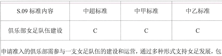 而在女足方面,中超俱乐部女足建设由原来的“A级”降至“C级”,也就是倡导性建议,此项无法达到也不作为影响准入的硬性标准。